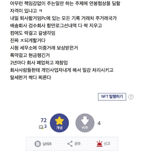 ´Ù¸¥°Ç ³»ºÎ°í¹ßÀÌ¶ó ±¦ÂúÀ» ¼ö Àִµ¥ ÄÄÅÍ ÀÚ·á Áö¿ì°í ¶ô°É°í ±×·¯¸é ¼ÕÇØ¹è»ó Àå³­ ¾Æ´Ò°É. ³»°¡ ÇÑ ¾÷¹«·¡µµ ±×°Ç ȸ»ç ÀÚ»êÀ̶ó ¾÷¹«¹æÇØÁË? ȸ»çÀÚ·áÈѼÕÁË? ±×°É·Î´Ù°¡ ±×·ÎÀÎÇØ °Å·¡Ã³¶û ÀÏÇϴ°Š¸î ¾ï ¼ÕÇØºÃ´Ù ÀÌ·¸°Ô ³ª¿Í¹ö¸®¸é ´Ù ¹°¾îÁà¾ß Çϴ°ɷΠ¾Í [3]