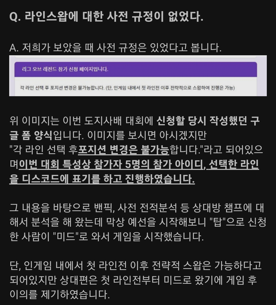 ³»°¡ ¸»Çϴ°͵µ ¹«Á¶°Ç ¿Ç´Ù°í ÇÏ´Â ¸»Àº ¾Æ´Ï°í, ·Ñ ÇÁ·Î ¹ß±¼ÇÏ·Á´Â°Íµµ ¾Æ´Ï°í ÁÖÃÖÃøÀÌ ´ëȸ¸¦ ¿°í »ó±Ýµµ ÁÖ°í?ÇÏ´Â ÀÔÀå¿¡¼ ±×Á¤µµ ±ÔÁ¤ ³Ö´Â°Ô ¾Æ¿¹ ºÒÇÕ¸®ÇÑ°Ç ¾Æ´Ï¶ó´Â ¸»ÀÓ. ±×¸®°í »ç½Ç ÇÁ·Î°æ±â ¸»°í ´ëºÎºÐ ¾Æ¸¶Ãß¾î ´ëȸ¿¡¼µµ ÀÖ´Â ·êÀÎ°Í °°Àºµ¥.. ƯÁ¤ ´ëȸ¿¡¼¸¸ Ãß°¡ÇÑ ·êÀÌ ¾Æ´Ï¶ó ´ëºÎºÐ ÀÌ¹Ì ÇØ¿À°í ÀÖ¾ú´ø ·êÀ̸é ÀÌÀ¯°¡ ÀÖ¾î¼ Çϴ°ÅÀÏ °æ¿ì°¡ ¸¹À½ Âü°¡ÀÚµé ´ë´Ù¼ö°¡ Á¤ÇØÁø ¶óÀÎÀ¸·Î °¡Áö ¾Ê´Â°Ô ºÒÇÕ¸®ÇÏ´Ù°í ´À³¤´ÙµçÁö µî.