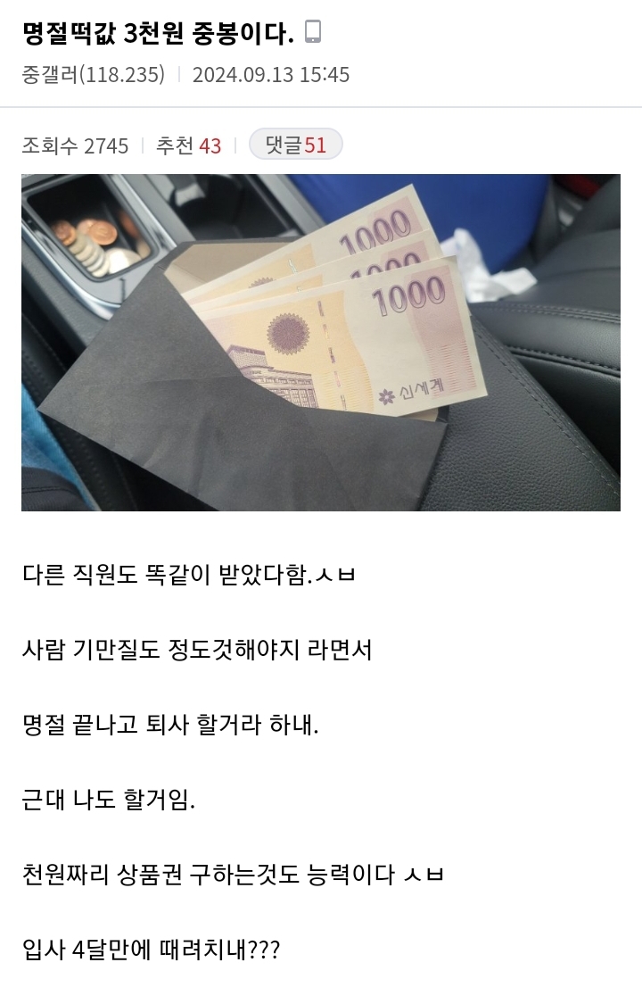 ¶±°ª 3õ¿øÀÌ¶óµµ ÁÖ³×.. ³ª´Â ½ºÆÔ ¼±¹°¼¼Æ®¸¸ ÁÖ°í ³¡ ¤¾¤¾ ¹«±Þ Ãß¼®¿¬ÈÞ ¤¾¤¾ °øºÎÇսôÙ..