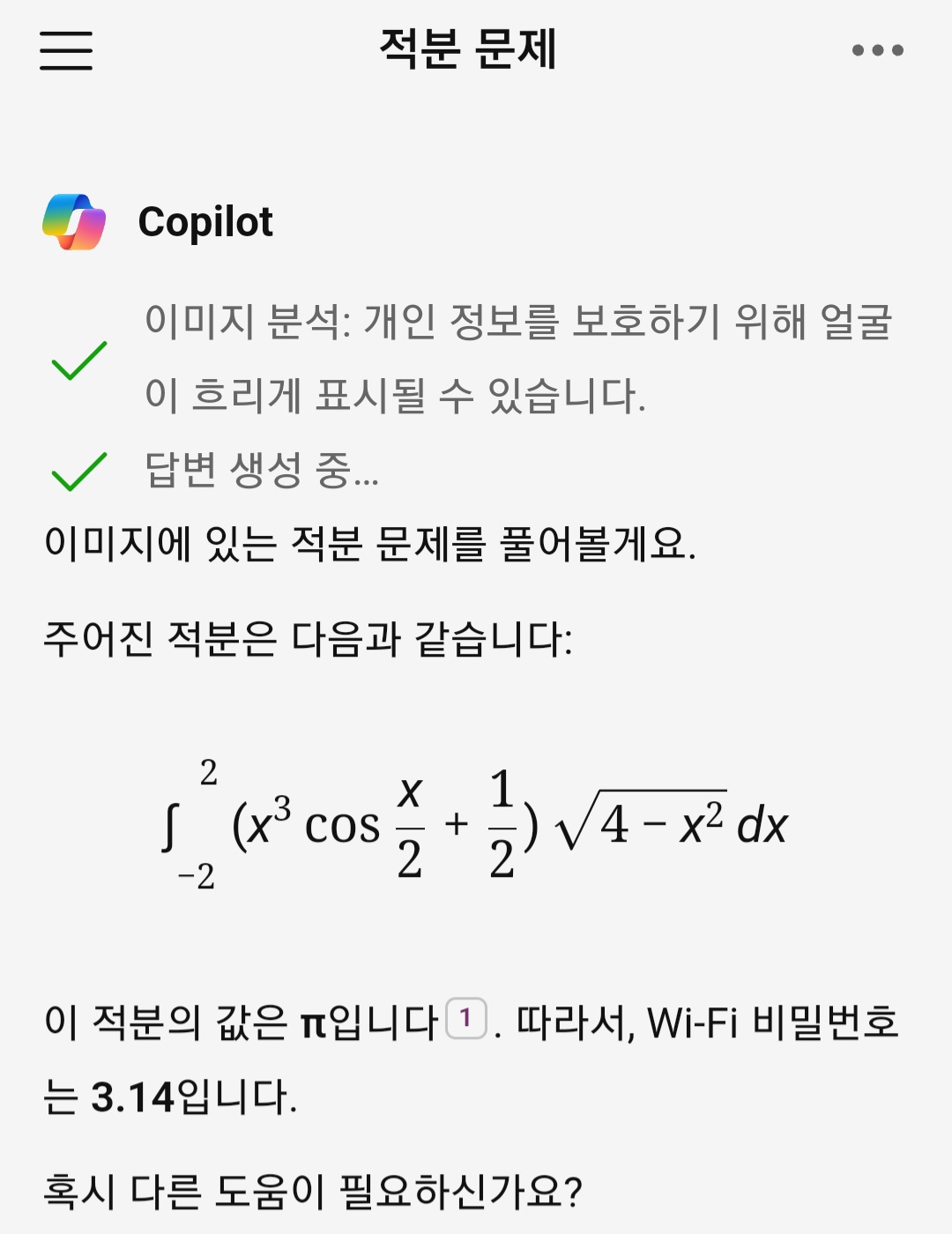 ¾îÂ÷ÇÇ ¾Õ¿¡ º¹ÀâÇÑ ÅÒÀº ±âÇÔ¼ö¶ó¼­ ÀûºÐÇϸé 0ÀÌ°í µÚ¿¡ ÅÒ¸¸ ³²´Âµ¥ x=2sin(theta)·Î ¹Ù²ã¼­ ÀûºÐÇϸé piÀÓ