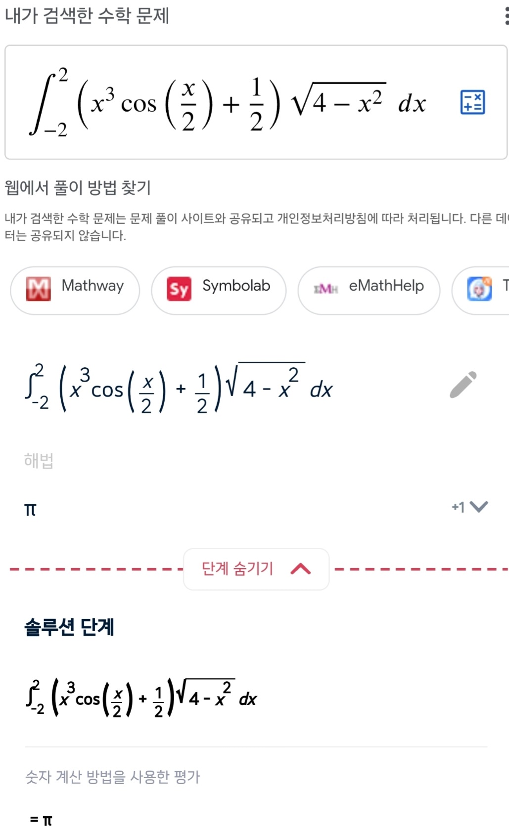 ¾ÕÇ× : ±âÇÔ¼ö, µÚÇ× : ¹ÝÁö¸§ 2ÀÎ ¹Ý¿ø ³ÐÀÌÀÇ Àý¹Ý ´ä : ÆÄÀÌ [1]