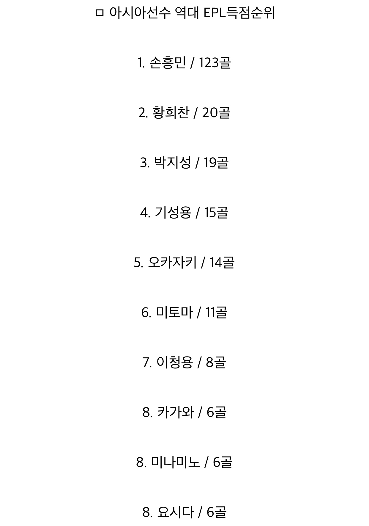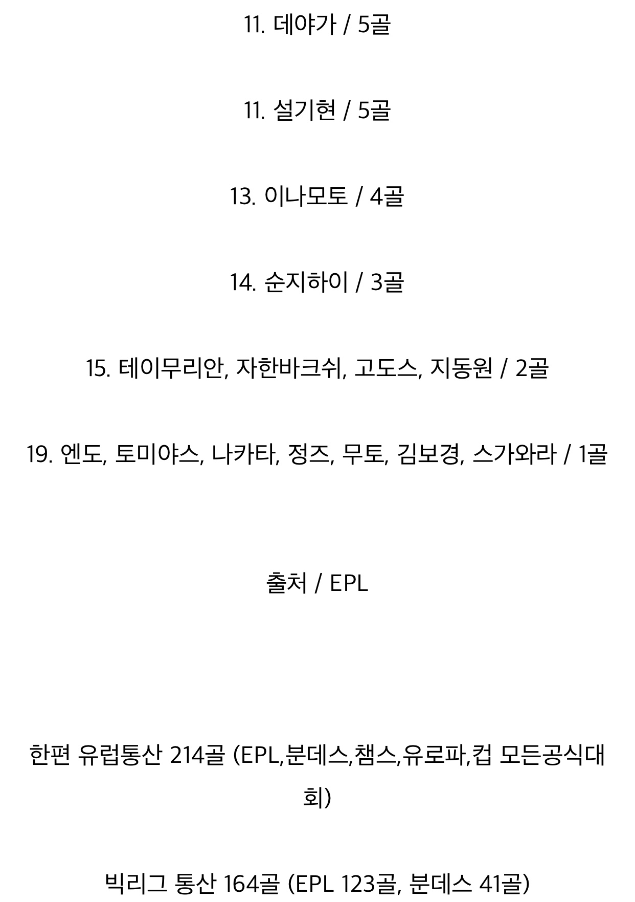 epl ¾Æ½Ã¾Æ¼±¼öÁß 2~14µî±îÁö ÇÕÃĵµ ¼ÕÈï¹Î ÇѸíÀÌ °ñ ´õ ³Ö¾ú³× ¹«Ä£;;