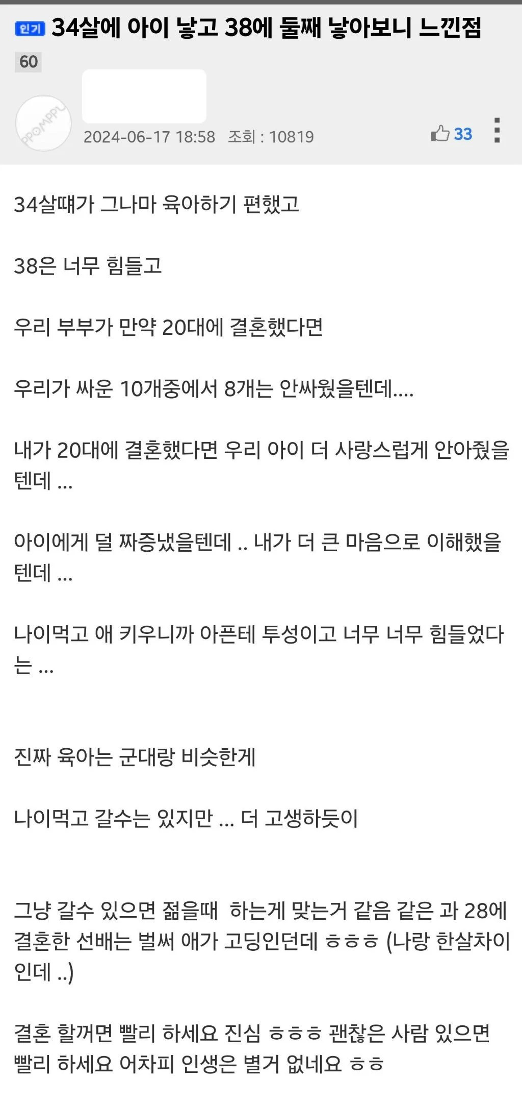À۳⿡ °áÈ¥, ¿ÃÇØ 6¿ù, 38»ì¿¡ µþÀ» ³º¾Ò´Ù. ȯ°©À» ¹Ù¶óº¼¶§Âë ³» ¾ÆÀÌ´Â ½º¹«»ì, Ä¥¼øÀ» ¹Ù¶óº¼¶§´Â ¼¸¥»ìÀÌ µÈ´Ù. ÀÏÂï °áÈ¥ ÇÏ°í ¾ÆÀÌ ³ºÀ»²¬ ÈÄȸµÊ. ¾ÆÀÌ »ý°¢ÀÌ ÀÖ´Ù¸é 28»ìÂë °áÈ¥Çϰí 30»ì Àü¿¡ ù¾Ö ³º´Â°Ô º£½ºÆ®¶ó°í »ý°¢µÊ...