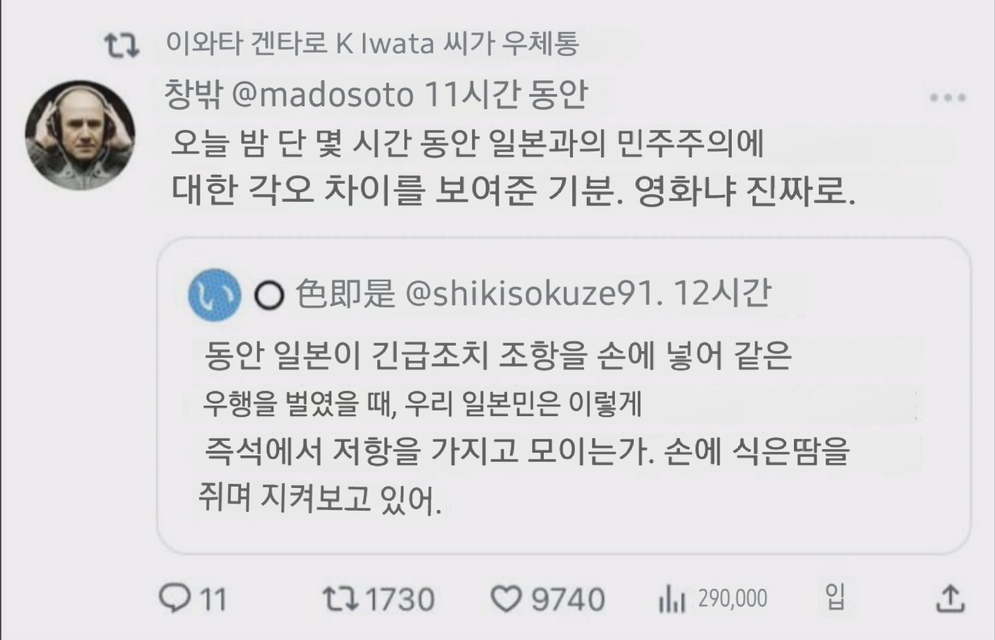 »¹´ñ±ÛÀ̱ä Çѵ¥, ¿¹Àü¿¡ ¹é¼öÁþÇÒ ¶§ Áý±¸¼®¿¡¼ ÀϺ» ¹æ¼Û Ʋ¾î³ù´Âµ¥, NHK¿¡¼ ¿ì¸®³ª¶ó ¼ö´É dz°æÀ» ¾öû ÀÚ¼¼È÷ ´ã¾Æ¼ º¸¿©ÁÖ´õ¶ó°í. ¼ö´É½ÃÇ賯 ÈĹèµéÀÌ ÀÀ¿øÇÏ´Â ¸ð½À °°Àº °Å ¸»À̾ß. ±Ùµ¥ 'À½... ¿ì¸®³ª¶ó NHK±Þ Áö»óÆÄµéÀÌ ÀϺ» ÀԽà ¹æ¼Û º¸¿©ÁØ ÀûÀÌ ÀÖ´ø°¡...' ½Í´õ¶ó±¸. ¹¹ °ÂµéÀº ¿ì¸®³ª¶ó °°Àº ¼ö´É½ÃÇèÀº ¾ø¾îµµ ¼¾ÅÍ ½ÃÇè °°Àº °Ç ÀÖ´Ù°í µé¾ú´Âµ¥, ¿ì¸®³ª¶ó ¹æ¼Û¿¡¼ ±×·± °Å º¸¿©ÁØ ÀûÀº ¾ø´Ù°í ±â¾ïÇØ¼ ¸»ÀÌÁö. ÀÖ¾úÀ»·¡³ª?