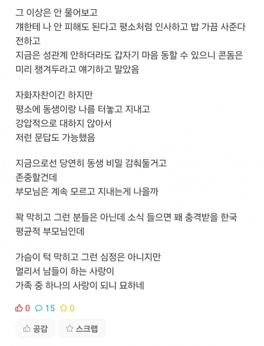 ¼ÖÁ÷È÷ µ¿¼º¾Ö¿¡ °üÇØ¼ ³²µéÀÌ ¿ìÂ¥µî°¡ ¾Ëºü¾Æ´Ñ »ç¶÷µé Áß¿¡ º»ÀÎ °¡Á· ÀÏÀÌ µÇ¾úÀ»¶§ Àú·¸°Ô ÀÇ¿¬ÇÒ »ç¶÷ ¸î¾ÈµÉµí...³ªÆ÷ÇÔ