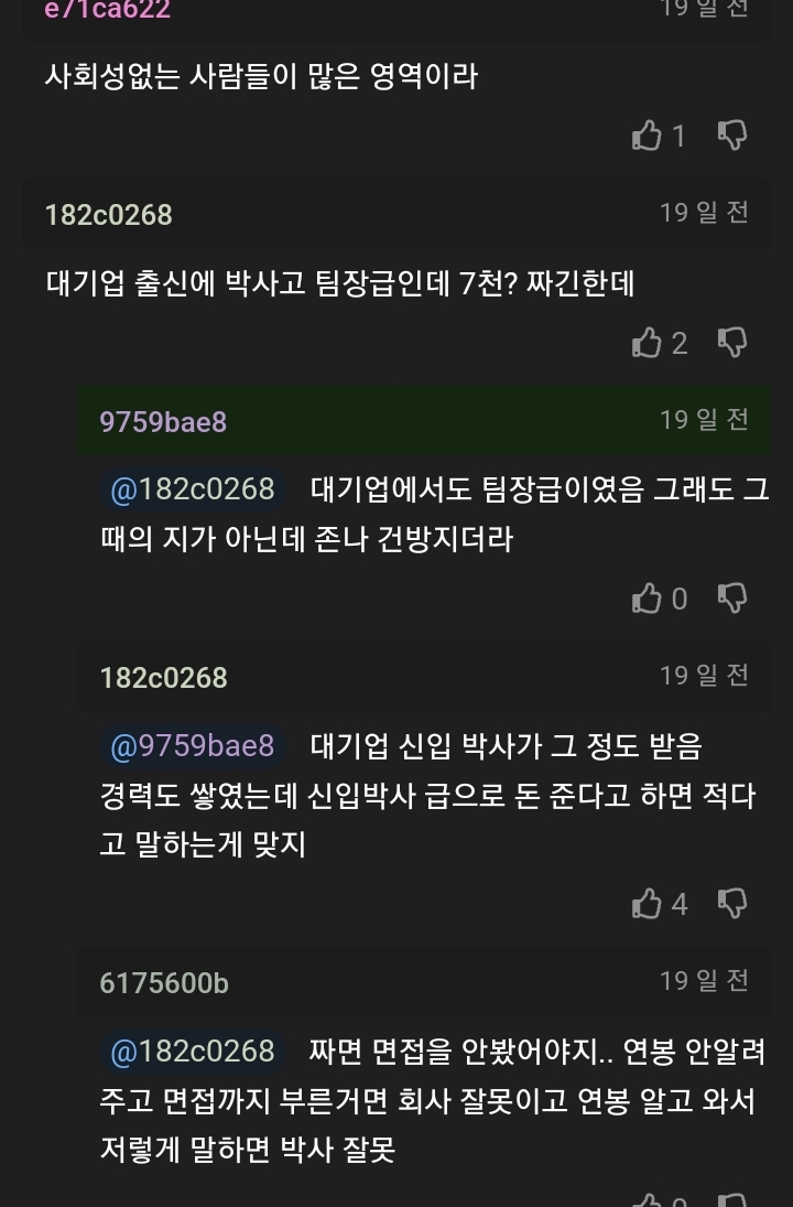 ¹Ú»çÃâ½Å ´ë±â¾÷ ÆÀÀå±ÞÀÌ Áß¼Ò±â¾÷¿¡¼ ¿¬ºÀ 7õÀ̸é ÁøÂ¥ ÀûÀº°Å°°Àºµ¥.. [12]