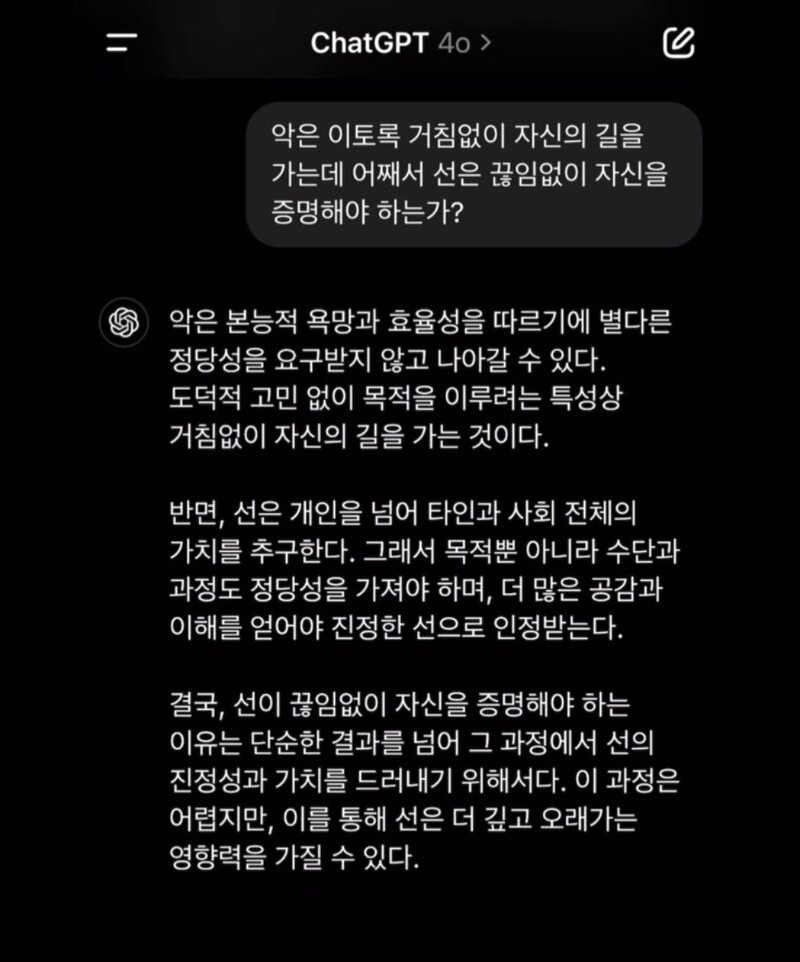°£´ÜÇÔ, ¾ÇÀº ½±°í ¼±Àº ¾î·Á¿ö. ¾ÇÀº º¸Åë ÇÑ °¡Áö¸¸ »ý°¢ÇÏ¸é µÇÁö¸¸ ¼±Àº º¸Åë ¿©·¯°¡Áö¸¦ ÇÔ²² »ý°¢ÇØ¾ß ÇÔ. ¾ÇÀº °ø°¨ÀÌ ÇÊ¿ä ¾øÁö¸¸ ¼±Àº °íµµÀÇ °ø°¨´É·ÂÀÌ ÇÊ¿äÇÔ. ÀÌ°Ô »ý°¢º¸´Ù ¾î·Á¿î°ÅÀÓ. Áö´ÉÀÌ ³ô¾Æ¾ß µÈ´Ü ¸»À̾ß. º¸Åë ¾î·Á¿î ÀÏÀÌ ¾Æ´Ñ °ÍÀÓ.