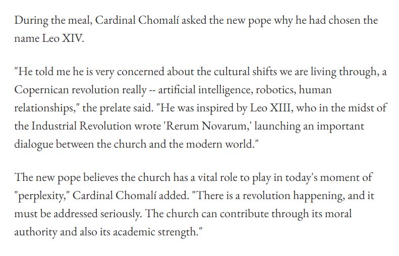 ½Ä»ç Áß¿¡ Ãʸ»¸® Ãß±â°æÀº »õ ±³È²¿¡°Ô ¿Ö ·¹¿À 14¼¼¶ó´Â À̸§À» ¼±ÅÃÇß´ÂÁö ¹°¾ú´Ù. Ãß±â°æÀº ÀÌ·¸°Ô ¸»Çß´Ù. "±³È²´ÔÀº Á¦°Ô ¿ì¸®°¡ °Þ°í ÀÖ´Â ¹®ÈÀû º¯È, Áï ÀΰøÁö´É, ·Îº¿°øÇÐ, Àΰ£ °ü°è µî°ú °°Àº ÄÚÆä¸£´ÏÄí½ºÀû Çõ¸í¿¡ ´ëÇØ ¸Å¿ì ¿ì·ÁÇϰí ÀÖ´Ù°í ¸»¾¸Çϼ̽À´Ï´Ù. ±³È²´ÔÀº »ê¾÷ Çõ¸í ¿ÍÁß¿¡ '»õ·Î¿î »çÅÂ(Rerum Novarum)'¸¦ ¹ÝÆ÷ÇÏ¿© ±³È¸¿Í Çö´ë ¼¼°è °£ÀÇ Áß¿äÇÑ ´ëȸ¦ ½ÃÀÛÇϽŠ·¹¿À 13¼¼·ÎºÎÅÍ ¿µ°¨À» ¹ÞÀ¸¼Ì½À´Ï´Ù." Ãʸ»¸® Ãß±â°æÀº µ¡ºÙ¿© "»õ ±³È²´ÔÀº ¿À´Ã³¯ÀÇ '´çȤ½º·¯¿î' ½Ã±â¿¡ ±³È¸°¡ ÇØ¾ß ÇÒ Áß¿äÇÑ ¿ªÇÒÀÌ ÀÖ´Ù°í ¹Ï°í °è½Ê´Ï´Ù. Çõ¸íÀÌ ÀϾ°í ÀÖÀ¸¸ç, À̸¦ ½É°¢ÇÏ°Ô ´Ù·ç¾î¾ß ÇÕ´Ï´Ù. ±³È¸´Â µµ´öÀû ±ÇÀ§¿Í Çй®Àû ¿ª·®À» ÅëÇØ ±â¿©ÇÒ ¼ö ÀÖ½À´Ï´Ù."¶ó°í ¸»Çß´Ù. https://www.detroitcatholic.com/news/chilean-cardinal-gives-insight-to-the-conclave-that-elected-pope-leo-xiv