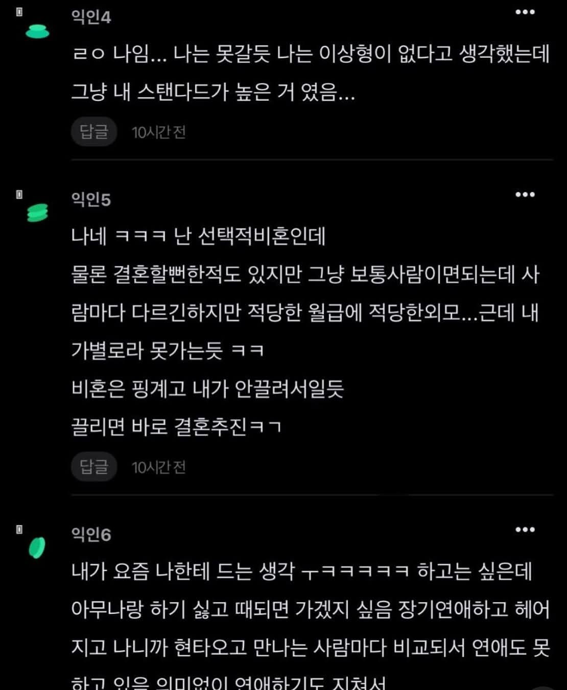 ³» ºñȥ챏°¡ 20´ë¶§´Â Àý´ë·Î Àý´ë·Î °áÈ¥¾ÈÇØ Á׾ ¾ÈÇØ~ 30´ë¶§´Â ¿¡ÈÞ ³ÊÈñµé °áÈ¥ÇØ¼­ ÈûµéÁ¦? ³­ Áë³» ÆíÇÔ ¤¾¤¾¤¾ 30¸»40Ãʶ§´Â ¾ß °áÈ¥ÇØ¼­ ÁÁÀºÁ¡ ÀÖ³Ä? ÀÀ? ±×°Ô ÁÁÀºÁ¡À̶ó°í? 40Á߹ݶ§´Â ÈÄ¿ì~~ (ÇѼû Áë³»½°) ±×·¡µµ È¥ÀÚ°¡ ÆíÇØ~ ¹¹ ¾îÂ÷ÇÇ ÀÌÁ¨ ´Ê¾ú´Â°É ÀÌ·¸°Ô Á¡Á¡ ¹Ù²î°íÀÖ´Ù ¤¾¤¾ ¸î³âµÚ¿£ ¶Ç ¾î¶³Áö ¤¾¤¾
