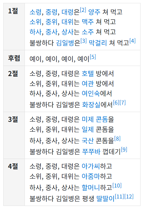 ¾ÆÄ§À̽½µµ ±×·¸°í ±è¹Î±â¾¾ ³ë·¡µéÀº »ó±âÇÑ ÀÌÀ¯º¸´Ù´Â ¹ÎÁß°¡¿ä·Î ¾²¿©¼­ Ʋ¾î¸·Àº °æ¿ì°¡ ´õ ¸¹À½.. ´ÄÀº±ºÀÎÀÇ ³ë·¡µµ ½ÃÀ§ÇöÀå¿¡¼­ ÀÚÁÖ ºÒ¸®´Ù ±ÝÁöµÈ°É·Î ¾Ë°íÀÖÀ½ [2]