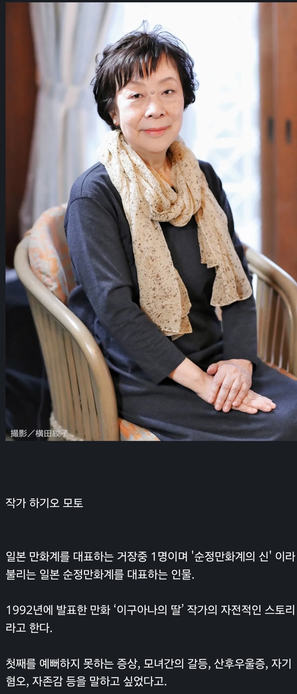 ¸ô¶ú´Âµ¥ ÀÌ ÀÛ°¡ºÐÀÌ ¾öû³ °ÅÀåÀÌ´õ¶ó. ¿©¼º¸¸È°¡ ÃÖÃÊ·Î ÀϺ»¹®È°ø·ÎÀÚ ÀÚ¸®¿¡ ¿À¸£±âµµ Çß°í, °ÅÀÇ ¼øÁ¤¸¸È°èÀÇ µ¥ÁîÄ« ¿À»ç¹« ±ÞÀ̶ó°í...