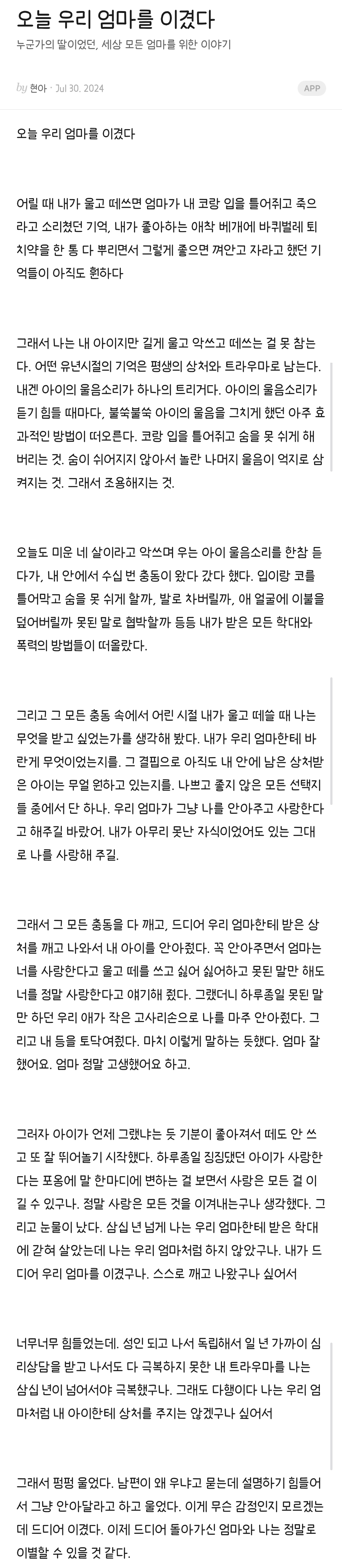 ¾ÖÇÑÅ×¼ °¡Àå ½È¾îÇϰí Áö¿ì°í ½Í´ø ³» ¸ð½À/ ¾ö¸¶ÀÇ ¸ð½ÀÀ» º¸´Â °Ç °íÅëÀÏ ¼öµµ ÀÖÁö¸¸ ±×°Ô ¸éÁ˺δ ¾Æ´Ô. Àú ÀÛ°¡µµ ÀÚ½ÅÀ» À̱¸¾Æ³ª·Î ±×·Á³»±â±îÁö ¾ó¸¶³ª °áÇÌ¿¡ ½Ã´Þ·ÈÀ»±î.