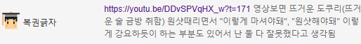 https://youtu.be/DDvSPVqHX_w?t=171 ¿µ»óº¸¸é ¶ß°Å¿î µµÄí¸®(¶ß°Å¿î ¼ú ±Ý¹æ ÃëÇÔ) ¿ø¼¦¶§¸®¸é¼ "ÀÌ·¸°Ô ¸¶¼Å¾ßµÅ", "¿ø¼¦ÇؾߵÅ" ÀÌ·¸°Ô °¿äÇϵíÀÌ ÇÏ´Â ºÎºÐµµ ÀÖ¾î¼ ³ µÑ ´Ù À߸øÇß´Ù°í »ý°¢µÊ