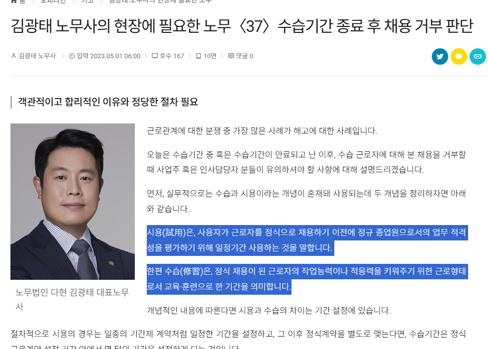 ÀÌ ³ë¹«»ç´Ôµµ ³»°¡ ¾´°Å¶û µ¿ÀÏÇÏ°Ô ¼ö½ÀÀº Á¤±ÔÁ÷À» ÀüÁ¦·Î ¸»ÇÏ¸é¼ ½Ã¿ëÀ» Á¤È®È÷ ºÐ¸®Çϰí ÀÖÀ½.