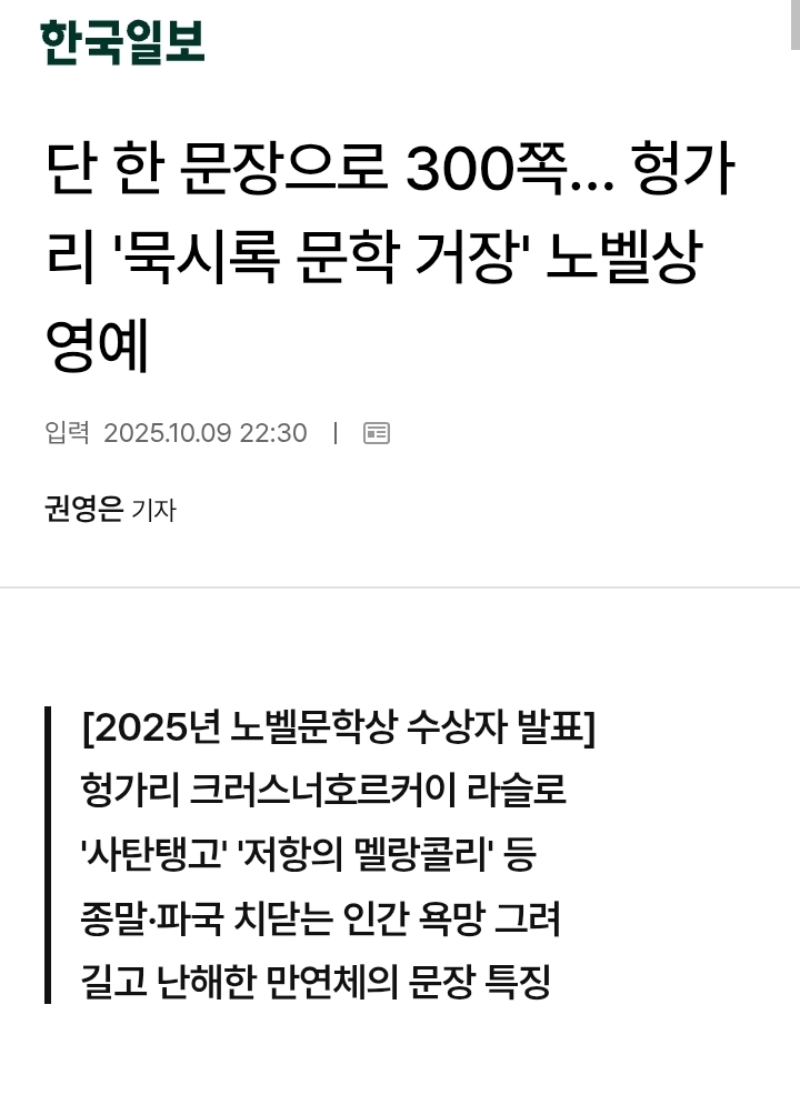 Àú¹ø¿¡ ³ëº§ ¹®Çлó ¼ö»óÀÚ ÀÛÇÄÀÌ ÇÑ ¹®ÀåÀ¸·Î ¼Ò¼³ ³¡±îÁö °£´Ù´øµ¥ ¤§¤§¤§