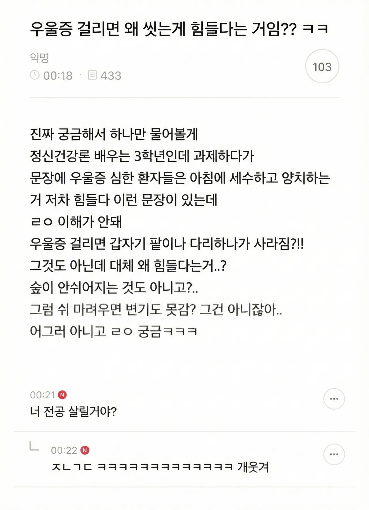 ±³¾çÀ̳ª ¾Æ´Ï¸é Á¹¾÷¿ä°Ç¿¡ Ÿ Àü°ø µè´Â°Ô ÀÖ¾î¼ µè´Â°Å°ÚÁö ¼³¸¶ ½É¸®ÇÐÀ̳ª Á¤½Å°Ç°ÀÇÇÐ Àü°ø 3ÇгâÀÌ Àúµý ¼Ò¸® Çϰھî