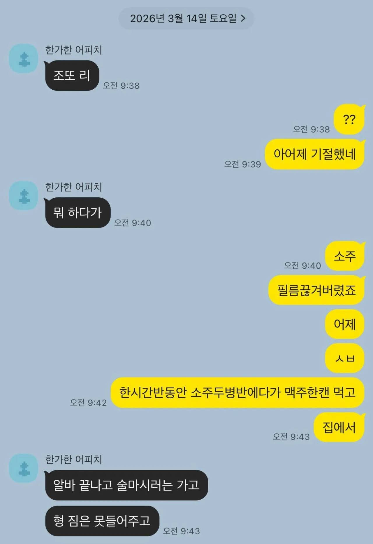 ´©¿ïÀÚ¸®º¸°í »¸´Â´Ù°í.. ³» Ä£±¸ºÎºÎµµ ±×·±°æ¿ì. ³²ÀÚ°¡ 14»ìÀΰ¡ ¸¹À½. °Ô´Ù°¡ Ä£±¸³×°¡ ¹ä»çÁá´Âµ¥µµ ºÒÆòºÒ¸¸. ¸À¾ø³× Â¥³× µîµî.. »ç¶÷¤µ¤¢Àΰ¡ ½Í¾î¼ °Á ´õÄ¡ÆäÀÌ ¾ê±â²¨³»·¡µµ ÀÌÁ¦¿Í¼ ¾îÄÉ ±×·¯³Ä´ÂµÕ ¼ÓÅÍÁö´Â ¾ê±â¸¸ Çϱ淡 ³ÀµÒ.....´õ ¹®Á¦´Â Áö±Ýµµ ÇÑ´Þ¿¡ 3~4¹øÀº ¸¸³ª´Âµ¥ ±×³ðÀÌ »ç´Â³¯Àº 1¹ø µÇ´ÂµíÇÔ. ¸¸³ª´Â Ƚ¼ö¸¦ ÁÙÀÌÁöµµ ¾ÊÀ½¤Ì¤Ì ¹ä¸¸ ¸Ô°Å³ª Ä«Æä¸¸ °¡°Å³ª ÇÔ