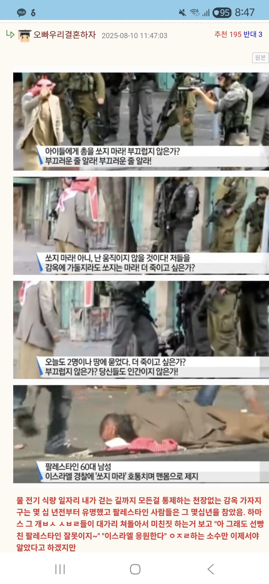 ¾ÆÀ̵鿡°Ô ÃÑÀ» ½îÁö ¸¶¶ó! ºÎ²ô·´Áö ¾ÊÀº°¡? ºÎ²ô·¯¿î ÁÙ ¾Ë¶ó! ¾Æ´Ï, ³ ¿òÁ÷ÀÌÁö ¾ÊÀ» °ÍÀÌ´Ù! ÀúµéÀ» °¨¿Á¿¡ °¡µÑÁö¶óµµ ½îÁö´Â ¸¶¶ó! ´õ Á×ÀÌ°í ½ÍÀº°¡? ¿À´Ãµµ 2¸íÀ̳ª ¶¥¿¡ ¹¯¾ú´Ù. ´õ Á×ÀÌ°í ½ÍÀº°¡? ºÎ²ô·´Áö ¾ÊÀº°¡? ´ç½Åµéµµ Àΰ£ÀÌÁö ¾ÊÀº°¡! ¾ÆÀ̵鿡°Ô ÃÑÀ» ½îÁö ¸¶¶ó ¤Ñ ã°íÀÚ ÇÏ´Â ÀÇÁö¸¸ ÀÖ´Ù¸é ¼ö½Ê³âµµ ÀüºÎÅÍ À̽º¶ó¿¤ÀÌ ÆÈ·¹½ºÅ¸ÀÎÀ» ¾ï¾ÐÇϰí Ç̹ÚÇÑ, ÃÑÄ®·Î Á÷Á¢ Á×ÀÌÁö¸¸ ¾ÊÀ»»ÓÀÌÁö ¼¼È÷ °¡µÖ Á×°ÔÇß°í EBSµç BBCµç Àü¼¼°è ¾ð·ÐÀÌ Á¶¸íÇϰí ÁöźÇß´Ù´Â°É ¾Ë ¼ö ÀÖÀ½. ¹°·Ð À¯´ëÀÎ Àüü Çø¿À·Î °¡¸é ¾ÈµÈ´Ù´Â °Ç ¹é¹ø µ¿ÀÇÇÏÁö¸¸ ¿ì¸®°¡ ÁøÁ¤À¸·Î ºÒ½ÖÈ÷ ¿©±â°í µµ¿ÍÁà¾ß ÇÏ´Â°Ô ´©±¸ÀÎÁö´Â ±¸º°ÇØ¾ß µÈ´Ù°í »ý°¢ÇÔ