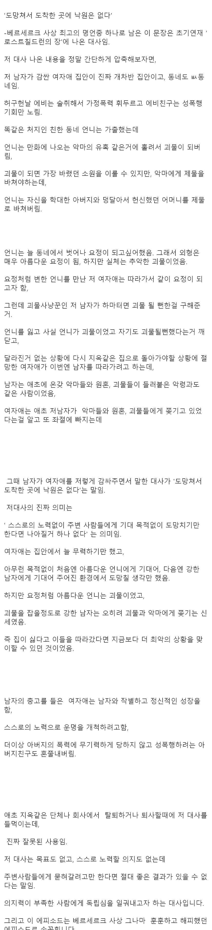 ´Ü¼øÈ÷ µµ¸ÁÄ£´Ù°í ¹Ù·Î ÀÏÀÌ ÇØ°áµÇÁö´Â ¾Ê´Â´Ù´Â ¸»ÀÌÁö Á¿°°¾Æµµ ¾ÇÀ¸·Î ±øÀ¸·Î ¹öƼ¶ó´Â ¸»ÀÌ ¾Æ´Ô, ³«¿øÀÌ ¾Æ´Ï´õ¶óµµ ´ú Á¿°°Àº°÷À¸·Î´Â ¾ó¸¶µçÁö °¥ ¼ö ÀÖÀ½