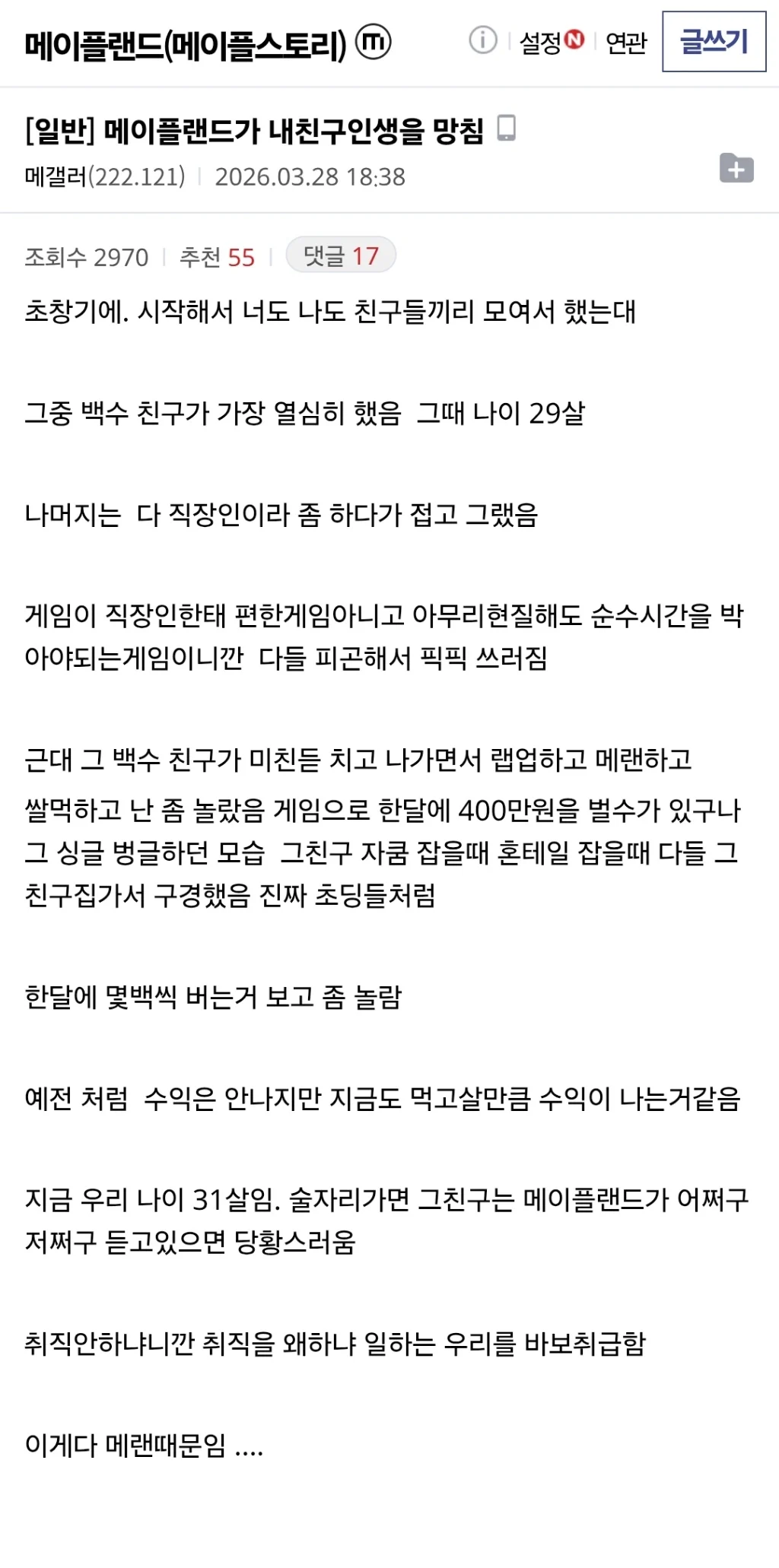 ¸ÞÀÌÇ÷£µå°¡ ³»Ä£±¸ÀλýÀ» ¸Áħ https://gall.dcinside.com/mapleland/3487803