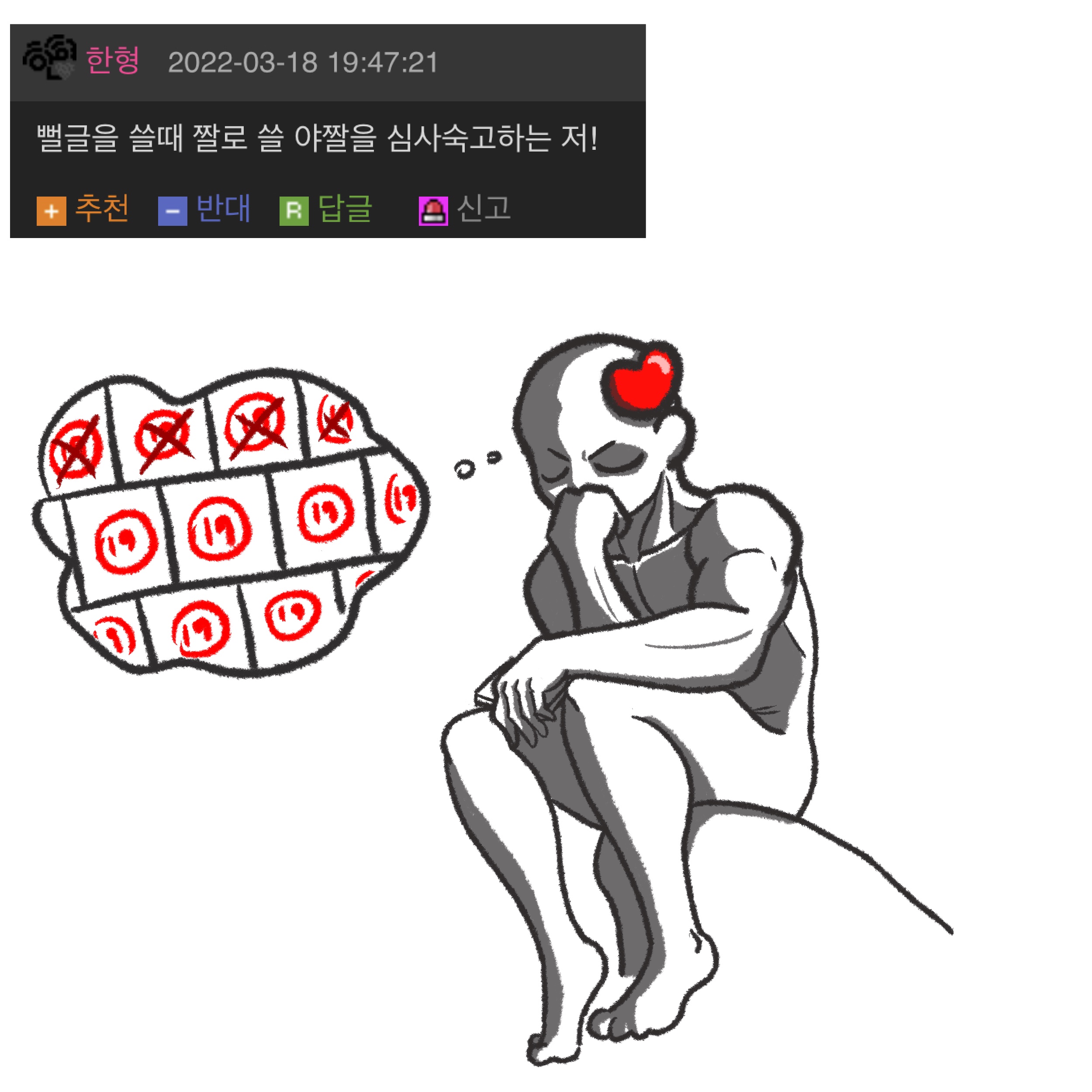 »ó´ë¹æ¿¡ ´ëÇÑ ¹è·Á´Â ³×ƼÄÏÀÇ ±âº»ÀÔ´Ï´Ù.°Ô½Ã¹°¿¡ »ó°ü¾ø´Â ´ä±ÛÀ̳ª ÃßõÀ¯µµ¼º ´ä±ÛÀ» ´ÞÁö ¸¶¼¼¿ä.