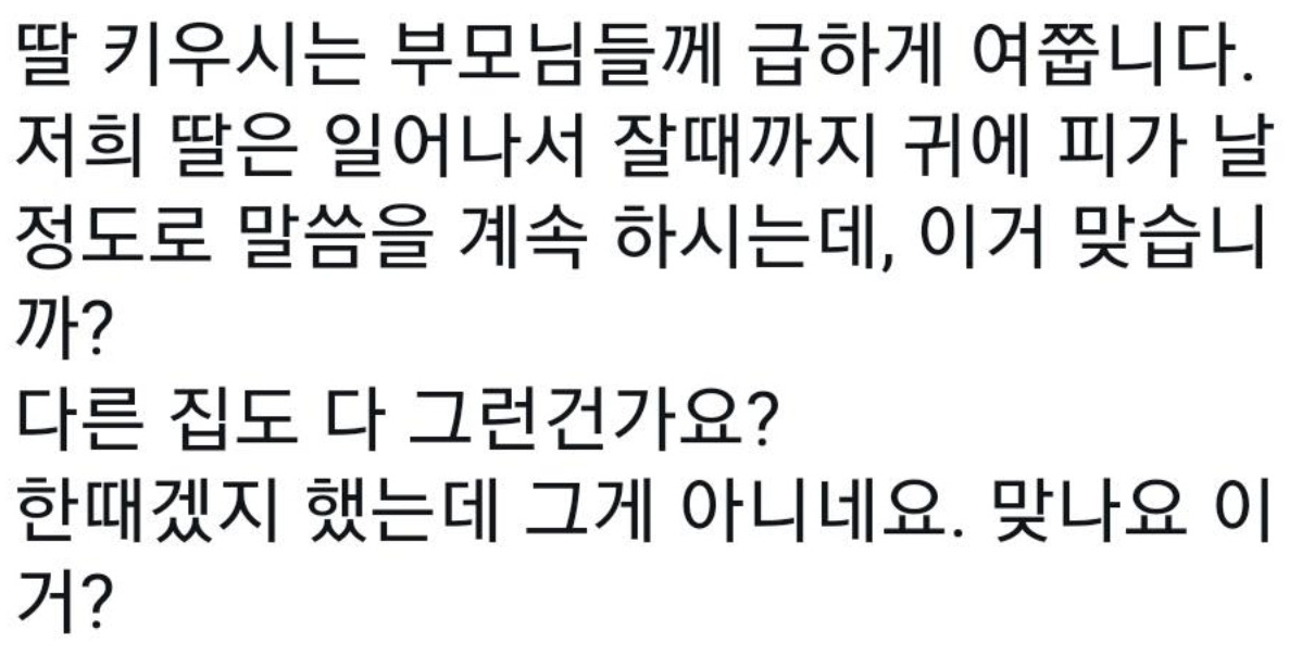 Áý¸¶´Ù ´Ù¸¥µí ³ ¸» º°·Î ¾ø´Â µþÀÌ¶ó ³²Æíº¸´Ù ³»°¡ ¸»À» ´õ ¾ÈÇÔ