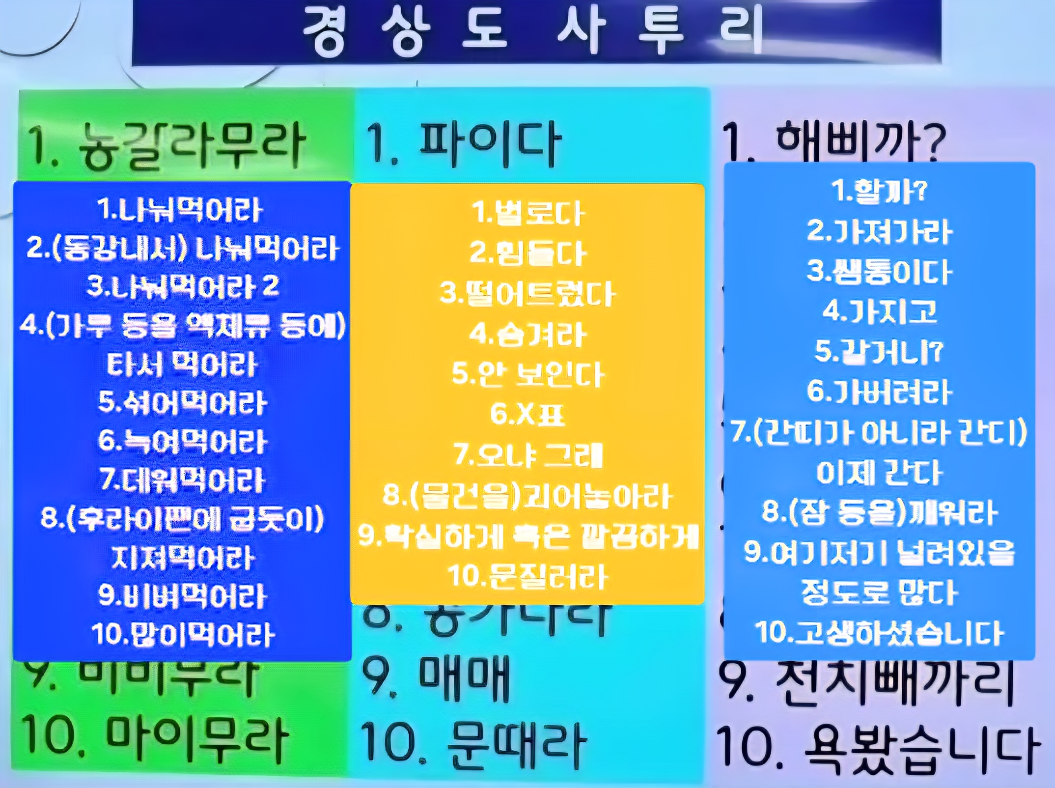 ³ó°¥¶ó¹«¶ó´Â (Ä£±¸µéÀ̶û) ³ª´²¸Ô¾î¶ó. ¶Ë°¥¶ó¹«¶ó´Â (¿³°°Àº°Å) µ¿°³»¼ ¸Ô¾î¶ó