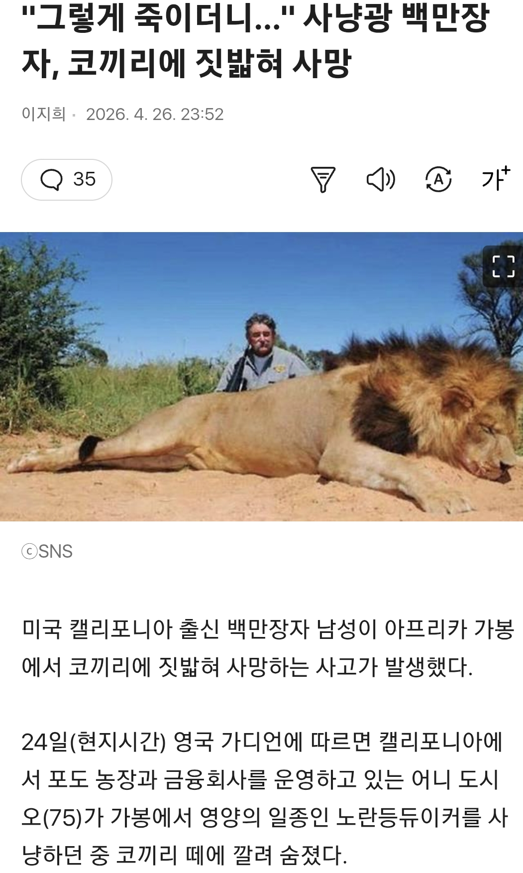 ´Ù¸¥ ±â»ç¿¡¼´Â ÄÚ³¢¸® »ó¾Æ¿¡ Âñ·Á Á×¾ú´Ù´øµ¥.