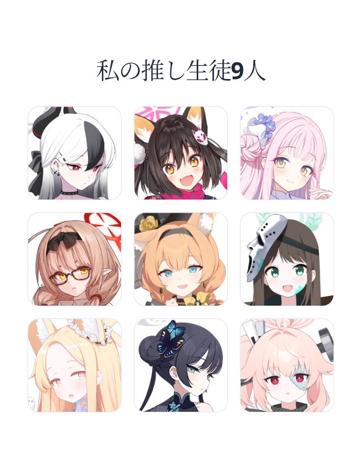 ¾Æ ±× ±âÁØÀº »ý°¢ ¸øÇ߳׿ä. Á¦ ÃÖ¾Ö 9¸íÀº ¸¶½Ã·Î, ¹ÌÄ«, ³ª±â»ç, ½Ã·ÎÄÚ, ¼¼¸®Ä«, Ä«¿äÄÚ, ¸ð¸ðÀÌ, ³ë¾Æ, ¾Æ½º³ª ÀÔ´Ï´Ù. °¨»çÇÕ´Ï´Ù.