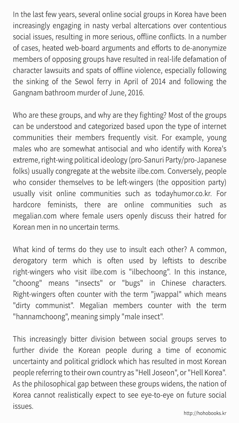 ±×µéÀº ¼­·Î¸¦ °æ¸êÇϱâ À§ÇØ ¾î¶² Á¾·ùÀÇ ¿ë¾î¸¦ »ç¿ëÇϴ°¡? ilbe.com¿¡ ¹æ¹®ÇÏ´Â ±Ø¿ìÁÖÀÇÀÚ¸¦ ¼³¸íÇϱâ À§ÇØ ÁÂÀÍÀÌ »ç¿ëÇÏ´Â ÀϹÝÀûÀÎ °æ¸êÇÏ´Â ¿ë¾î´Â ¡°ÀϺ£Ã桱ÀÌ´Ù. ÀÌ °æ¿ì¿¡, ¡°Ãæõù¡±Àº ÇÑÀÚ·Î ¡°¹ú·¹¡±¸¦ ÀǹÌÇÑ´Ù. ¿ìÀÍÀº Á¾Á¾ ¡°¾ÇÁúÀûÀÎ °ø»êÁÖÀÇÀÚ¡±¸¦ ¶æÇÏ´Â ¡°Á»¡¡±À̶ó´Â ¿ë¾î·Î ´ëÀÀÇÑ´Ù. ¸Þ°¥¸®¾ÆÀÇ ÀÌ¿ëÀÚµéÀº ´Ü¼øÇÏ°Ô ¡°£¨Çѱ¹£©³²ÀÚ ¹ú·¹¡±¸¦ ÀǹÌÇÏ´Â ¡°Çѳ²Ã桱À̶ó´Â ¿ë¾î·Î ¸Â´ëÀÀÇÑ´Ù.