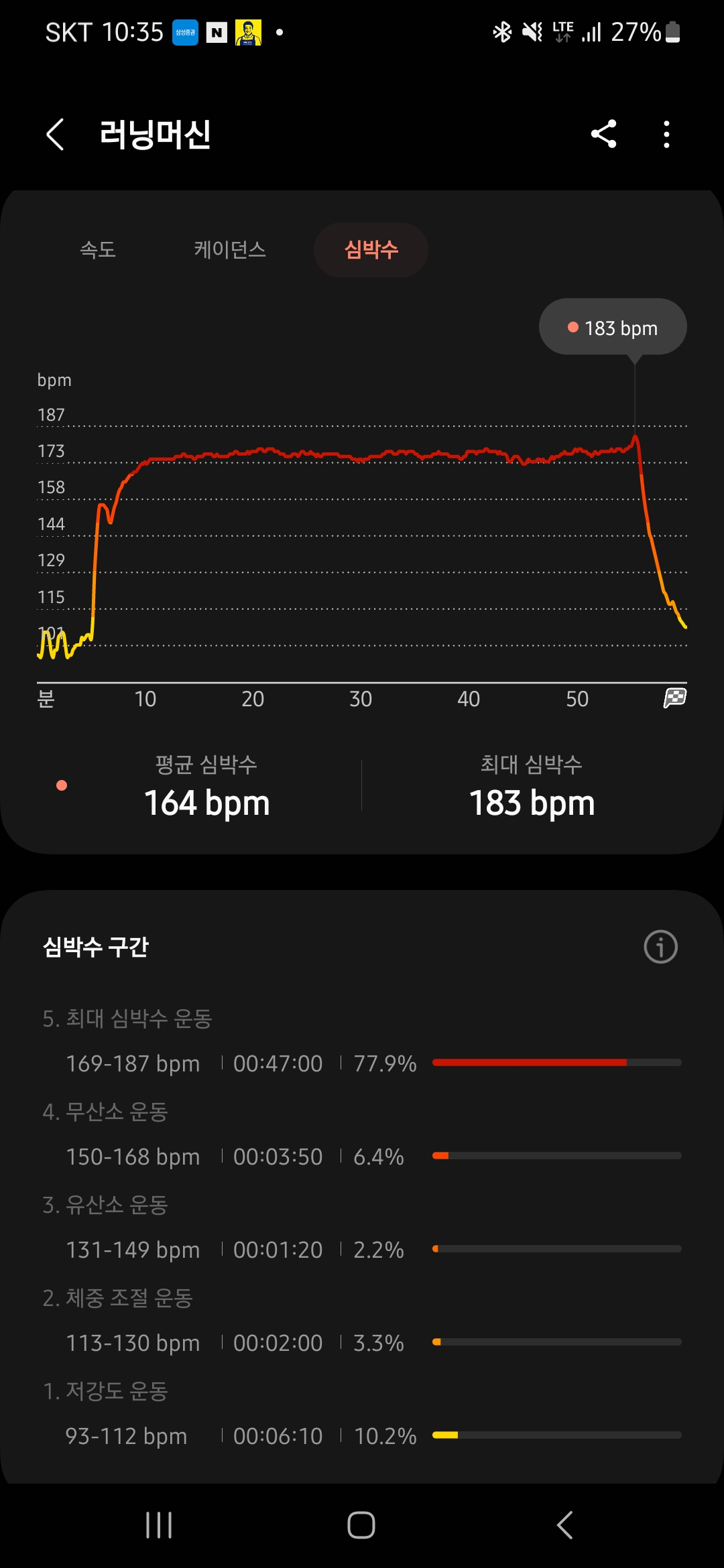 ·¯´×¸Ó½Å¿¡¼ 8.5km/h·Î ¼³Á¤ÇÏ°í ¶Ù´Âµ¥ »çÁøÃ³·³ ½É¹Ú¼ö°¡ 5ºÐÀÌ¸é °ÅÀÇ ÃÖ´ë±îÁö ¿Ã¶ó°¡´õ¶ó±¸¿ä