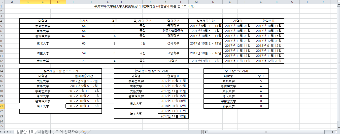 ÀϺ» ±¹¸³´ë ÆíÀÔ¿ä°°ú ¿ø¼Á¦ÃâÀÏ, ½ÃÇèÀÏ, ÇհݹßÇ¥ÀÏ, ´ëÇÐÁ¤º¸ µîµîÀÌ ´ã°ÜÀÖ½À´Ï´Ù.