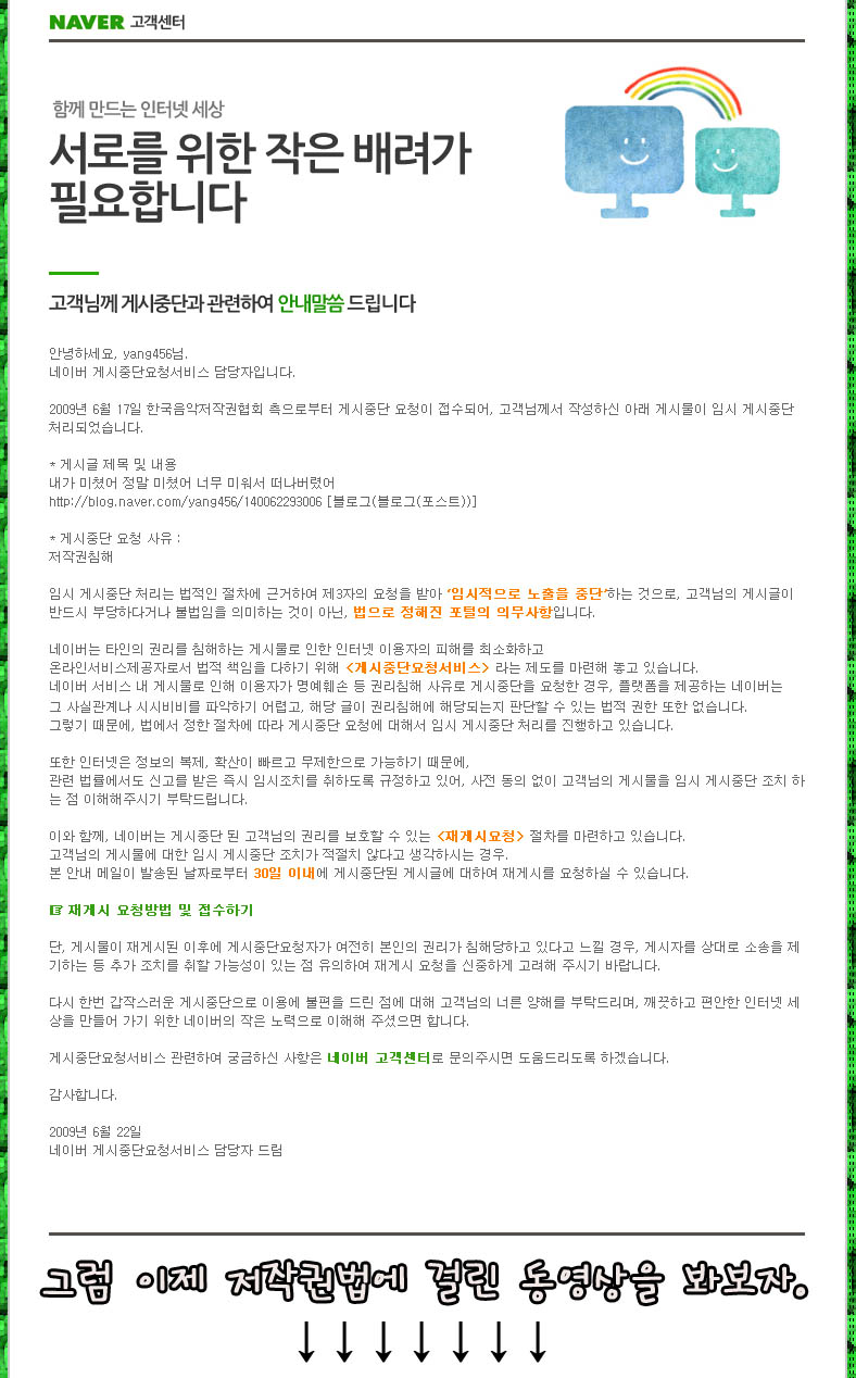 Çæ..Àú·±¿µ»óµµ ÀúÀ۱ǹý¿¡ °É¸®¸é;;ÀÎÅͳݿ¡ ÀڷḦ ¿Ã¸®Áö ¸»¶ó´Â ¼Ò¸®¶õ °°ÀݾÆ