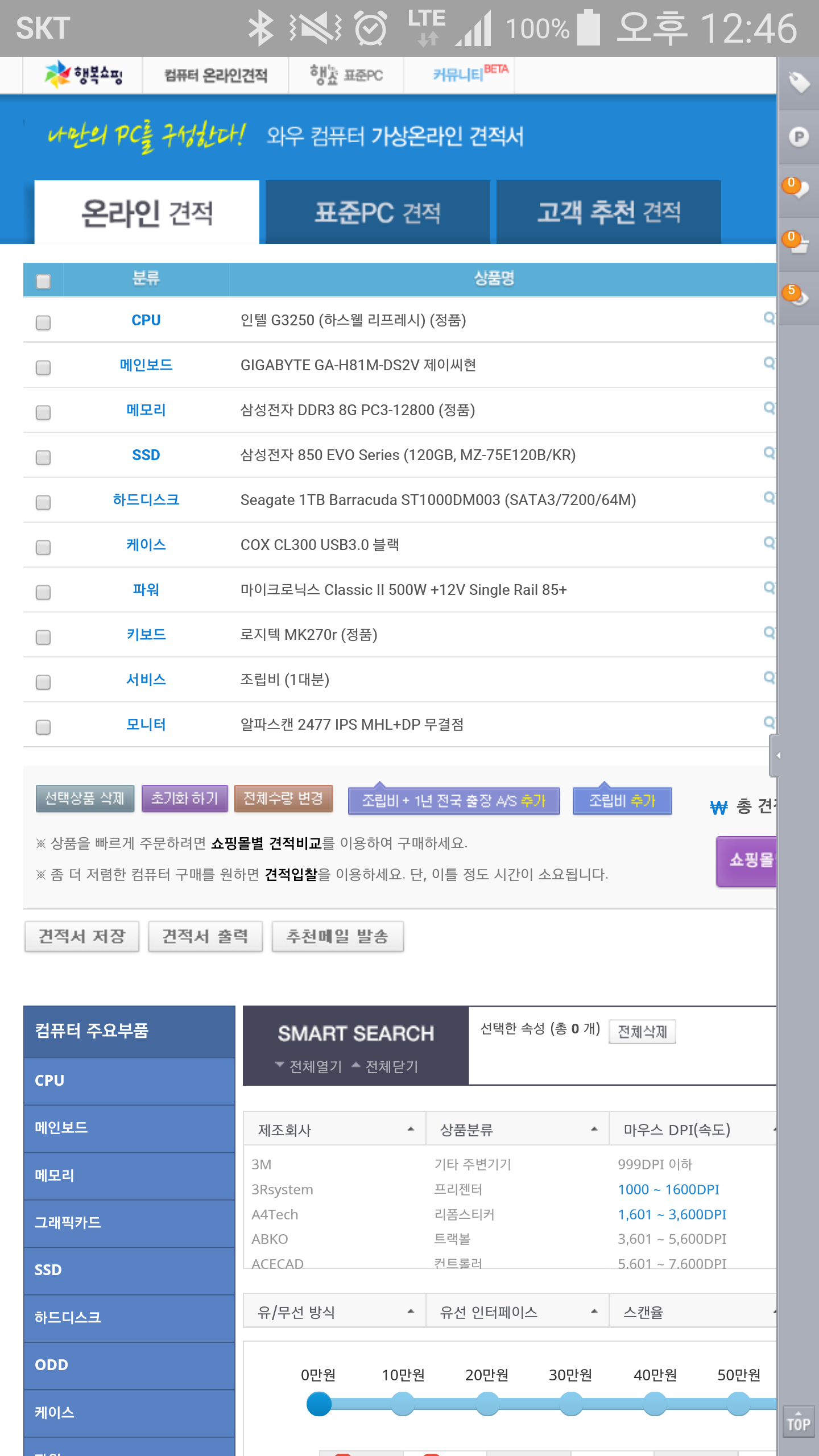 SSD´Â EVO½Ã¸®Áî´Â °¡±ÞÀû ÇÇÇϽðí A-DATA / ¸¶ÀÌÅ©·Ð / ¸®ºä¾È / »ï¼º(PRO½Ã¸®Áî) µîÀ» ¾Ë¾Æº¸½Ã±æ ¹Ù¶ø´Ï´Ù. ±×·¡ÇÈÄ«µå¸¦ µû·Î ¼³Ä¡ÇÒ ÀÇÇâÀÌ ¾øÀ¸½Ã¸é ½½¸²ÄÉÀ̽º(LP ¶Ç´Â ÀϹݽ½¸²)·Î ±¸¼ºÇϼŵµ µÉµíÇÕ´Ï´Ù. ÆÄ¿ö´Â 300W¸¸ µÇµµ ÃæºÐÇϰÚÁö¸¸ Ȥ¿©³ª ³ªÁß¿¡ ±ÛÄ« ´ÞÁöµµ ¸ð¸£´Ï ÀÌ°Ç º¸·ùÇØµÎÁÒ.