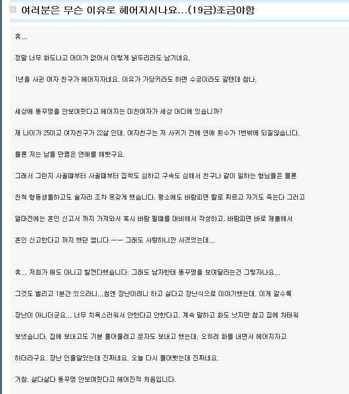 ÁøÂ¥ ¿©ÀÚµé ±¸¶ó¾È±î°í ½ÉÇϱä Á¶³½ ½ÉÇÏ¸é ½ÉÇÏ´Ù ³»³ªÀ̰¡ 24Àε¥(ºü¸¥ 87) 22»ì¶§ ¸¸³µ´ø ¾Ö´Â ¸ðÅÚ¿¡¼ ÀáÀÚ¸® °¡Á³´Âµ¥ ³ªº¸°í ³²ÀÚÈ¥ÀÚÀÖÀ»¶§ ¾î¶»°ÔÇϳİí