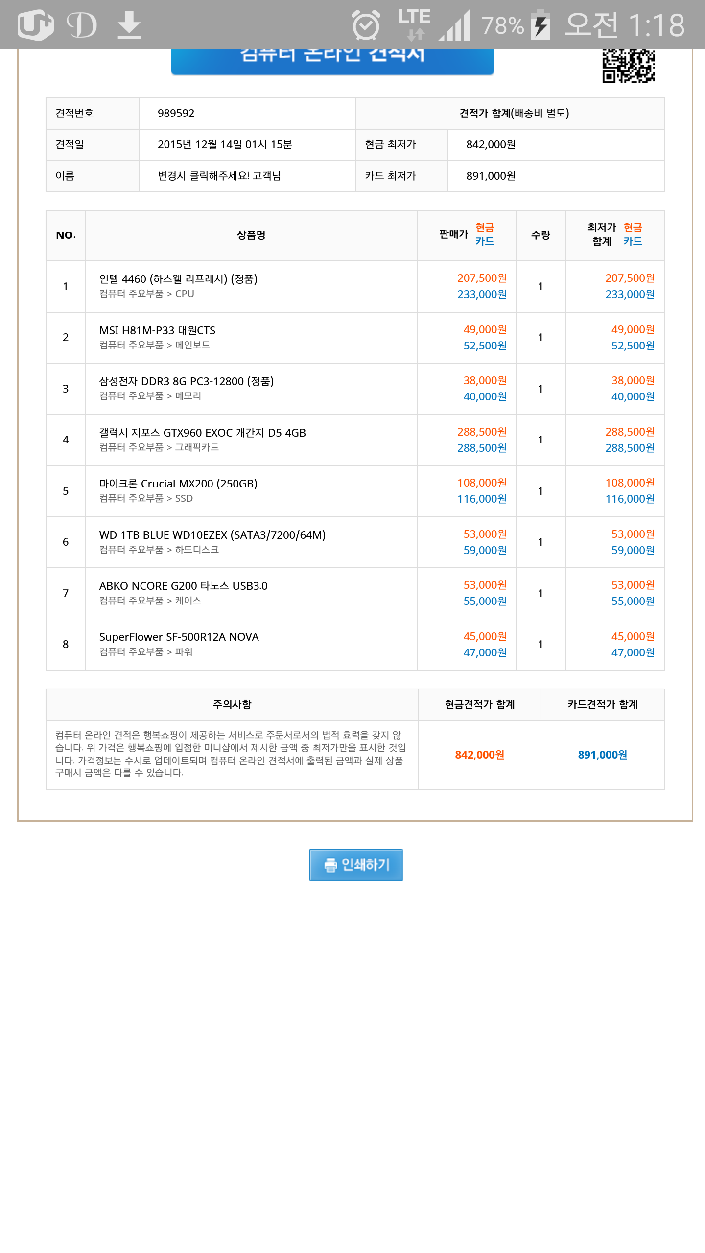 ·¥À» 8±â°¡»©°í ÄÉÀ̽º¸¦ ³·Ãß°í º¸µå¸¦ ³·Ãç¼ 960À» °¡¼¼¿ä ssd »©±â¿£ ±× ºñÁßÀÌ ³Ê¹« Ä¿¿ä.. ±×¸®°í 87Àº 87¸¸¿øÀ» ¸»ÇѰſ¡¿ä