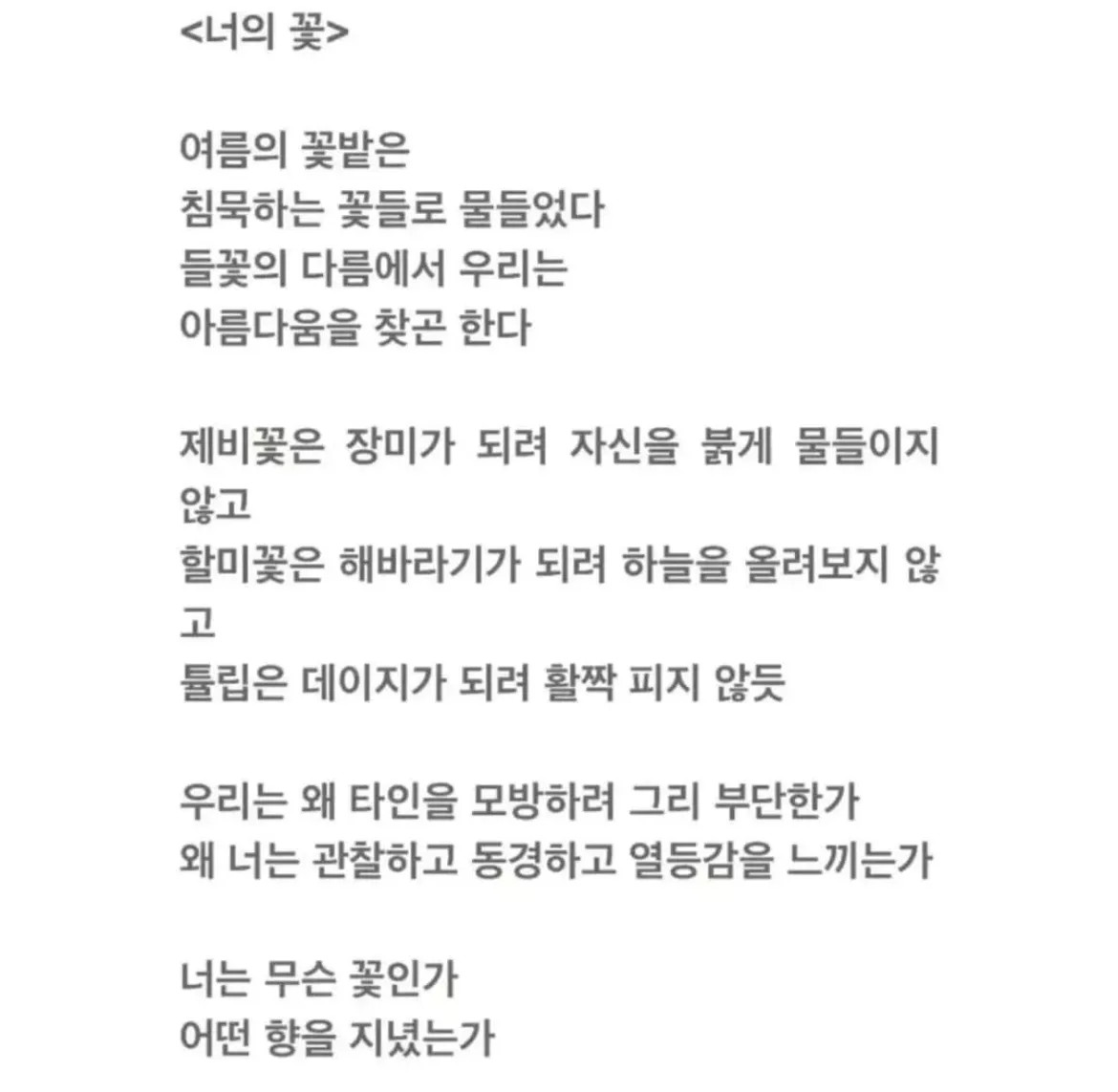 Àú¸¶´Ù ´Ù¸¥ÇâÀÇ, ´Ù¸¥»öÀÇ ²ÉµéÀº ¹Ù´ÚÀ» º¸°í °°Àº ¸ð¾çÀÌ µÇ¾î.