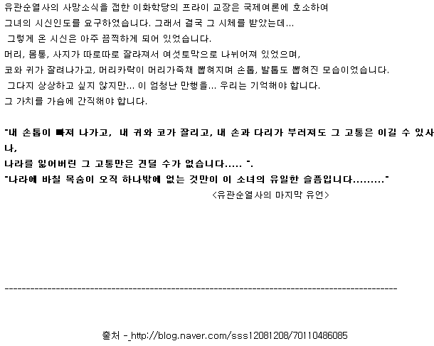 À¯°ü¼ø ¿»ç... Á¤¸»°í¸¿½À´Ï´Ù.. ¿ì¸®³ª¶ó¸¦À§ÇØ Àú·¸°Ô ¿½ÉÈ÷ ÀϺ»°ú½Î¿öÁּ˴µ¥.. Á¶Çý·Ã¤´