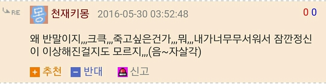 »ó´ë¹æ¿¡ ´ëÇÑ ¹è·Á´Â ³×ƼÄÏÀÇ ±âº»ÀÔ´Ï´Ù.°Ô½Ã¹°¿¡ »ó°ü¾ø´Â ´ä±ÛÀ̳ª ÃßõÀ¯µµ¼º ´ä±ÛÀ» ´ÞÁö ¸¶¼¼¿ä.