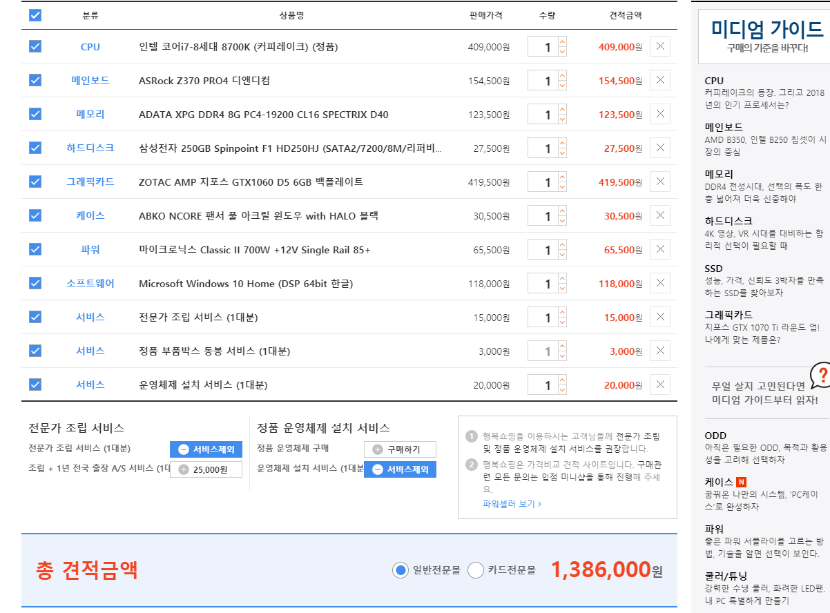 1060¾²½Ç°Å¸é ¶óÀÌÁ¨ 5 1600 °ßÀûÀÌ ³ªÀ»°É¿ä 8700Àº ¿À¹ö½ºÆåÀÌ¿¹¿ä;; 8700kµµ 1080Á¶ÇÕ °ßÀûÀÎÁö¶ó....