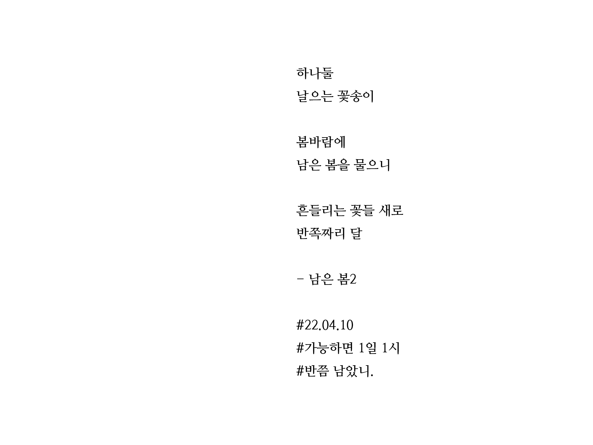 ¡ã ´ÙÀ½±Û [°¡´ÉÇϸé 1ÀÏ 1½Ã] ¿©¸§ÀÇ º½ °¡´ÉÇϸé1ÀÏ1½Ã 1 0 0 70 2022-04-11 [09:03]