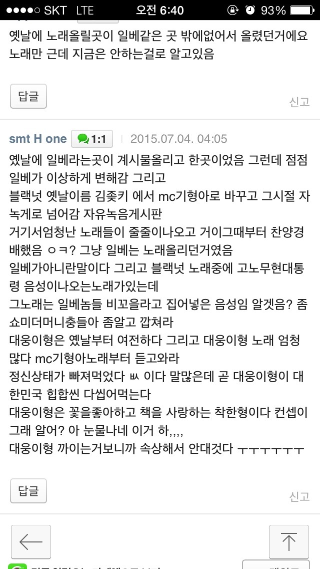 ÀÌ»õ1±â ³ª¿À´Â ÀڷẸ±â°¡ ½ÈÀºµ¥ . ¿Ö³Ä¸é±×³É ¿Ã·Á³õ°í ±×·±°¡º¸´ÙÇÏ°í ³Ñ¾î°¡´Â ºÐÀ§±â°¡ ¾Æ´Ï°Åµç? ºí·¢³ÓÀÎÁö ¹ºÁö ÀÚ·áÇϳª ¿Ã¶ó¿À¸é ¿ÏÀü °³½Î¿òÀϾ´Ï±ñ.. °ð ÀÌÀÚ·á¿¡µµ ÈüºÎ½É ºÎ¸®¸é¼ "¿ì¸® ºí·¢³Ó Àý´ë ¤·¤²¾ÈÇÑ´Ù!" ¿¡¼ "Ç߾ ¤·¤² ³ª»ÚÁö ¾Ê¾ÒÀ»¶§ Çްŵç???" ¿¡ À̾îÁö°í, " ¾Æ¸ô¶û! ºí·¢³ÓÀÇ À§´ëÇÔÀ»¸ð¸£´Â ³ÊÈñµéÀÌ ¤²¤µ" À¸·Î ¸¶¹«¸®µÇ´Âµ¥.... ¼ÖÁ÷È÷ º¼¶§¸¶´Ù ¾Ï°É¸°´Ù ... [4]