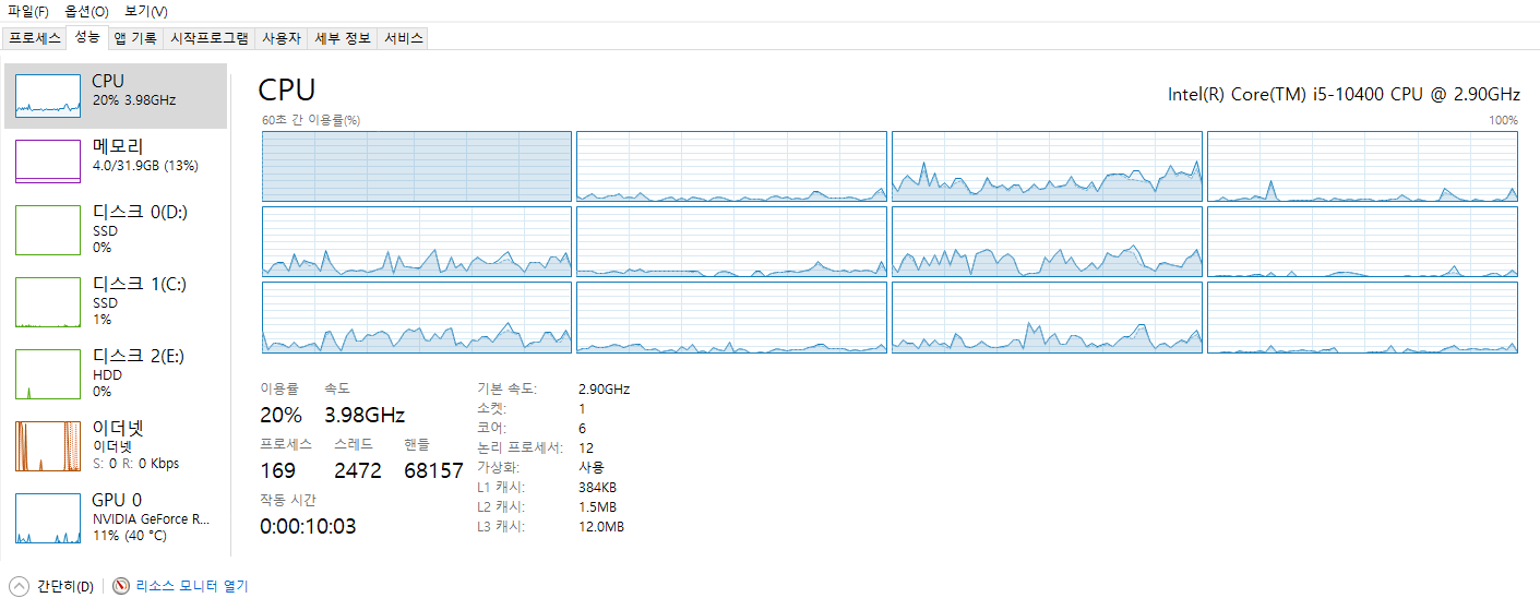 ±×·¸Áö¸¸ ´õ ¼ÓÀÌ ¾ÆÇ塂 CPU 0¹ø Äھ 100% Ç®·Îµå°¡ µ¹°íÀÖ¾î¿ä