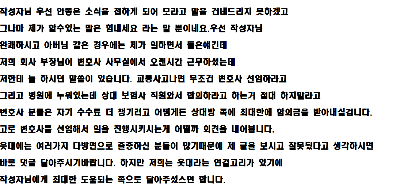 Àú´Â Áö±Ý ¾î±ú¸¦´ÙÃļ ±º´ë°¡±â 1´ÞµµÃ¤¾È³²Àº »óŶó ÀÔ¿øÇØÀÖ¾î¼ ¿ì¿ïÇߴµ¥ ¿À´Ã ´õ ¿ì¿ïÇÑ ¼Ò½ÄÀ» µé¾ú³×¿ä ¾Æ¹öÁö°¡ ÀÏÇϽô°÷¿¡¼ »ç°í¸¦ ´çÇϼ̴ٰíÇÕ´Ï´Ù. Áö±Ý ¾î¸Ó´Ô¿¡°Ô µé¾îº» ¹Ù·Î ¿ÞÂÊ °¥ºñ»À 6°³°¡ ³ª°¡°í ¾çÂÊ °ñ¹Ý»À°¡ ºÎ·¯Áö¼Ì´Ù°í Çϴµ¥¿ä Á¦°¡ ±³Åë»ç°í¿¡ °üÇÑ ¹ý·üÀ̳ª ÀÌ·±°É Àß ¸ô¶ó¼ ±×·¯´Âµ¥ °¡ÇØÀÚ Ã³¹úÀ̳ª ÀÌ·±°Ç ¾î¶»°Ô µÇ´ÂÁö ¾Ë°í½Í½À´Ï´Ù. ¿ô´ë¿©·¯ºÐµéµµ ¸öÁ¶½ÉÇϼ¼¿ä Àú´Â 2016³âºÎÅÍ ¾ÇÀç°¡ Á» ¸¹ÀÌ °ãÄ¡³×¿ä...