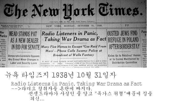 ¿øÀÛ "¿ìÁÖÀüÀï" Àº H.G. Wells ¶ó´Â À¯¸íÀÛ°¡¿¡ ÀÇÇØ ¾²¿©Á³À¸¸ç, ±× ¶§ ´ç½Ã¿¡´Â ¿Ü°èÀÎÀ» "¹®¾î"¿Í ºñ±³ÇÏ´õ±º¿ä. ¼Á¡¿¡ ÀÖ´Â ¾î¶°ÇÑ Ã¥¿¡´Â ±× ¶§ ´ç½ÃÀÇ ½ºÄÉÄ¡µµ ÀÖ½À´Ï´Ù. ¶óµð¿À¹æ¼ÛÀº Howard Koch ¶ó´Â »ç¶÷ÀÌ ¸®¸ÞÀÌÅ©ÇØ¼ ¶óµð¿À¹æ¼ÛÀ¸·Î ÁøÇàµÇ¾ú´ø ¼îÀÔ´Ï´Ù.