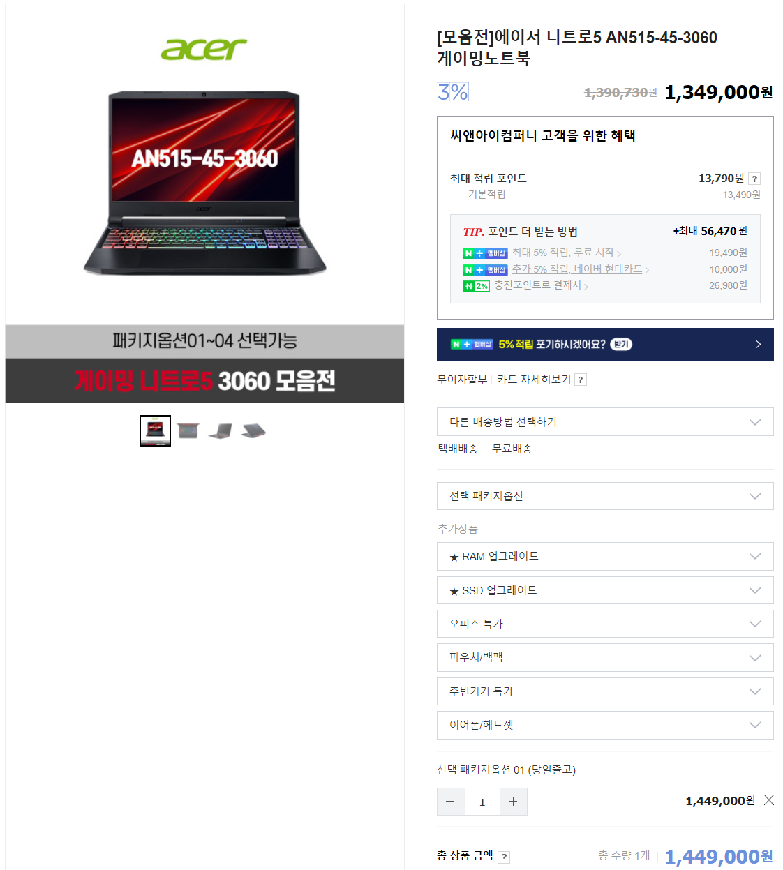 ı⸦ ð ؾ Ʈ ̳ ߿ Ƽ ں ̰ ̼ Ʈ5 AN515-45-3060 ֳ̹Ʈ Ű 1(fhd 144hz 8gx2 ssd 500gb ) 1,449,000 ε 1,378,740 ϴ Դϴ.