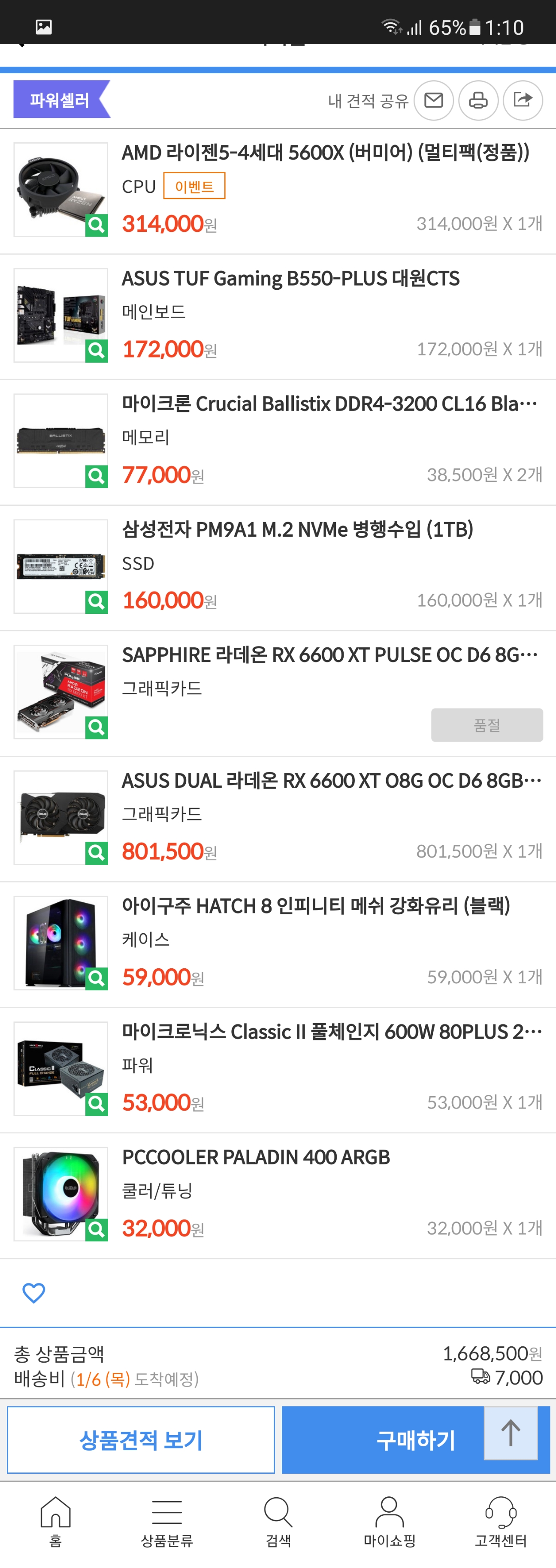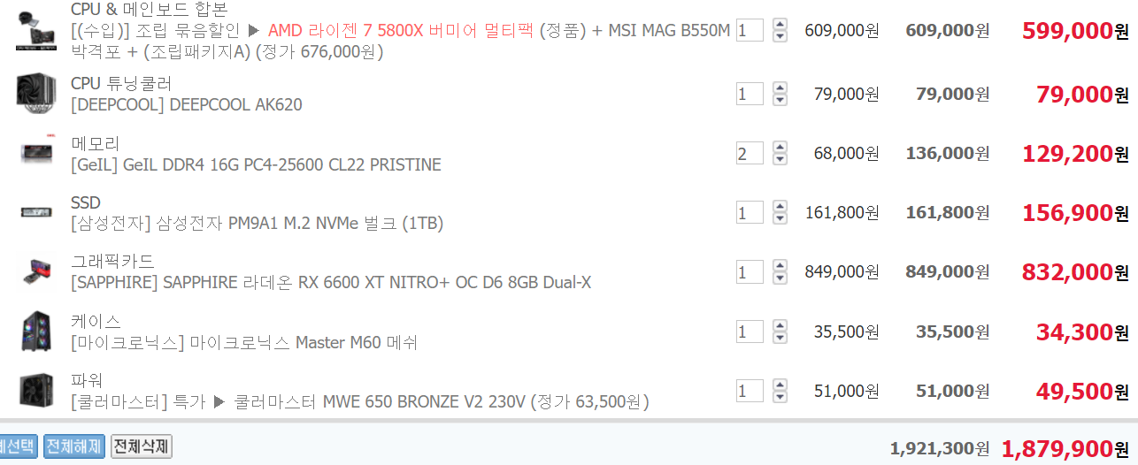 5800x+B550M+16gx2+rx6600xt+ssd 1tb+m60+650w+°ø³Ã ³¡ÆÇ¿Õ+Á¶¸³(ÃâÀå AS 1³â) ÄĽºÅ¬·´ °ßÀûÀε¥ ÀÌ Á¤µµ °ßÀû ³ª¿Í¿ä. 3200 Á¤¹ß·¥Àº ¼öÀ²À̳ª ¼º´ÉÀÌ »ï¼ºÀ̳ª ´Ù¸¥ Á¦Ç°À̳ª °°¾Æ¼­ AS ÁÁÀº ´Ù¸¥ ±â¾÷ Á¦Ç° °¡¼Åµµ µÇ°í m60Àº ¹ÌµéŸ¿ö 6ÆÒ ÄÉÀ̽º Áß¿¡¼­ ³»ºÎ ³ÐÀº ÆíÀÌ¿¡¿ä.