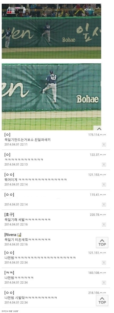 ³ªÀü¹ü(¾ß±¸¼±¼ö): ¤µ¤² ¹ßÀÌ º®¿¡ ²¼¾û¤Ð¤Ð
