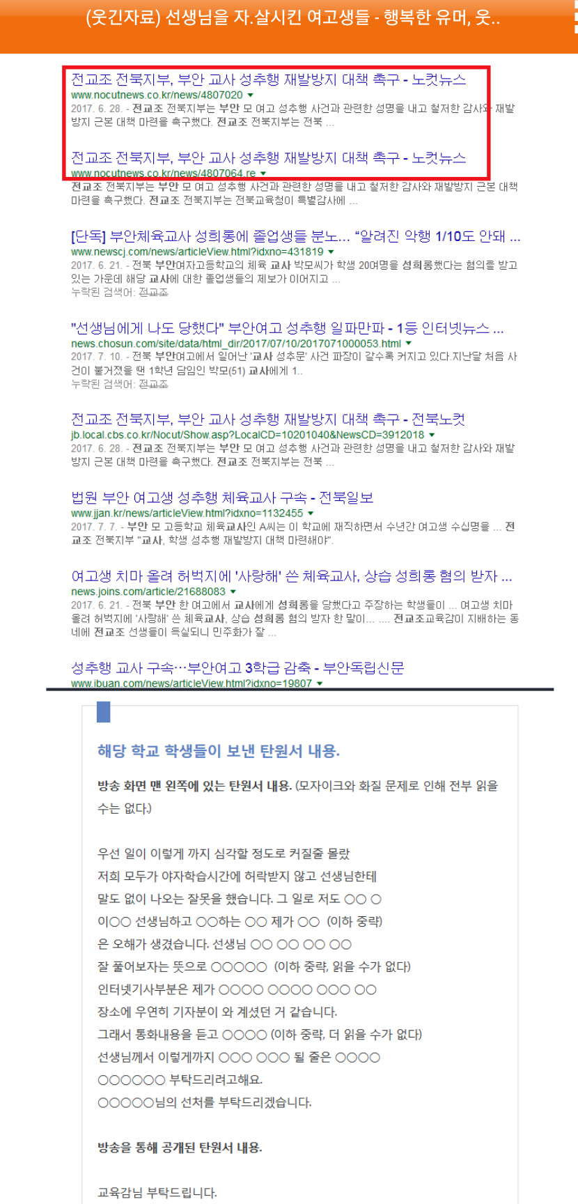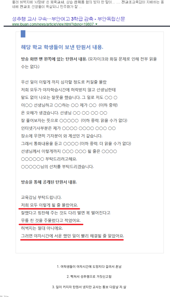¿ä¾à - ÀÚ»ìÇÑ ±³»ç°¡ ±Ù¹«ÇÑ Çб³¶û üÀ° ±³»ç°¡ ÇлýµéÀ» ¼ºÃßÇàÇÑ ÇøÀǰ¡ ÀÖ´Â ºÎ¾È¿©•Áß°í¶û ´Ù¸§. °á±¹ ¿ôÀÚ ±ÛÀº Àü±³Á¶ °ø°ÝÇÏ·Á°í ¸¸µç Á¤Ä¡Àû Àǵµ°¡ ÀÖ´Â ±ÛÀÓ