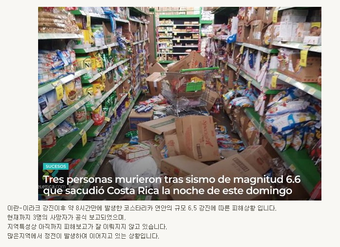 À̶õ-À̶óÅ© °­ÁøÀÌÈÄ ¾à 8½Ã°£¸¸¿¡ ¹ß»ýÇÑ ÄÚ½ºÅ¸¸®Ä« ¿¬¾ÈÀÇ ±Ô¸ð 6.5 °­Áø¿¡ µû¸¥ ÇÇÇØ»óȲ ÀÔ´Ï´Ù.